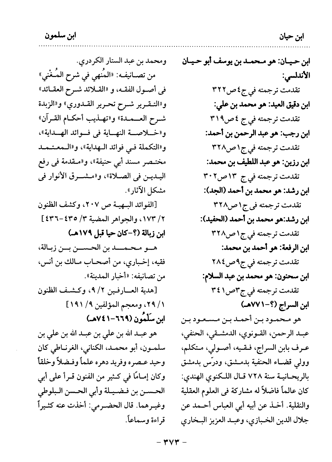 ومحمد بن عبد الستار الكردري. من تصانيفه: " المُنهي في شرح المُغْني " في أصول الفقه، و " القلائد شرح العقائد "، و " التقرير شرح تحرير القدوري "، و " الزبدة شرح العمدة "، و " تهذيب أحكام القرآن "، و " خلاصة النهاية في فوائد الهداية "، و " التكملة في فوائد الهداية "، و " المعتمد مختصر مسند أبي حنيفة "، و " مقدمة في رفع اليدين في الصلاة "، و " مشرق الأنوار في مشكل الآثار ". [الفوائد البهية ص207، وكشف الظنون 2 / 173، والجواهر المضية 3 / 435 - 436] .