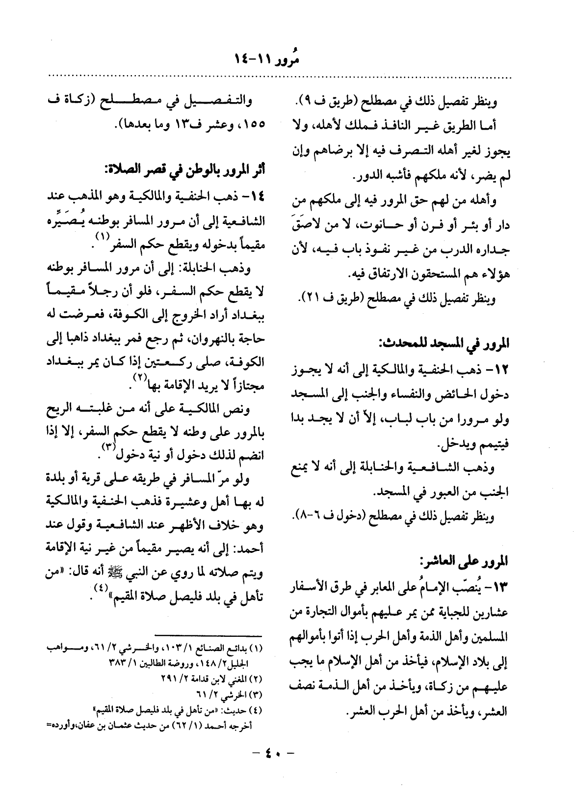 (1) بدائع الصنائع 1 / 103، والخرشي 2 / 61، ومواهب الجليل 2 / 148، وروضة الطالبين 1 / 383.