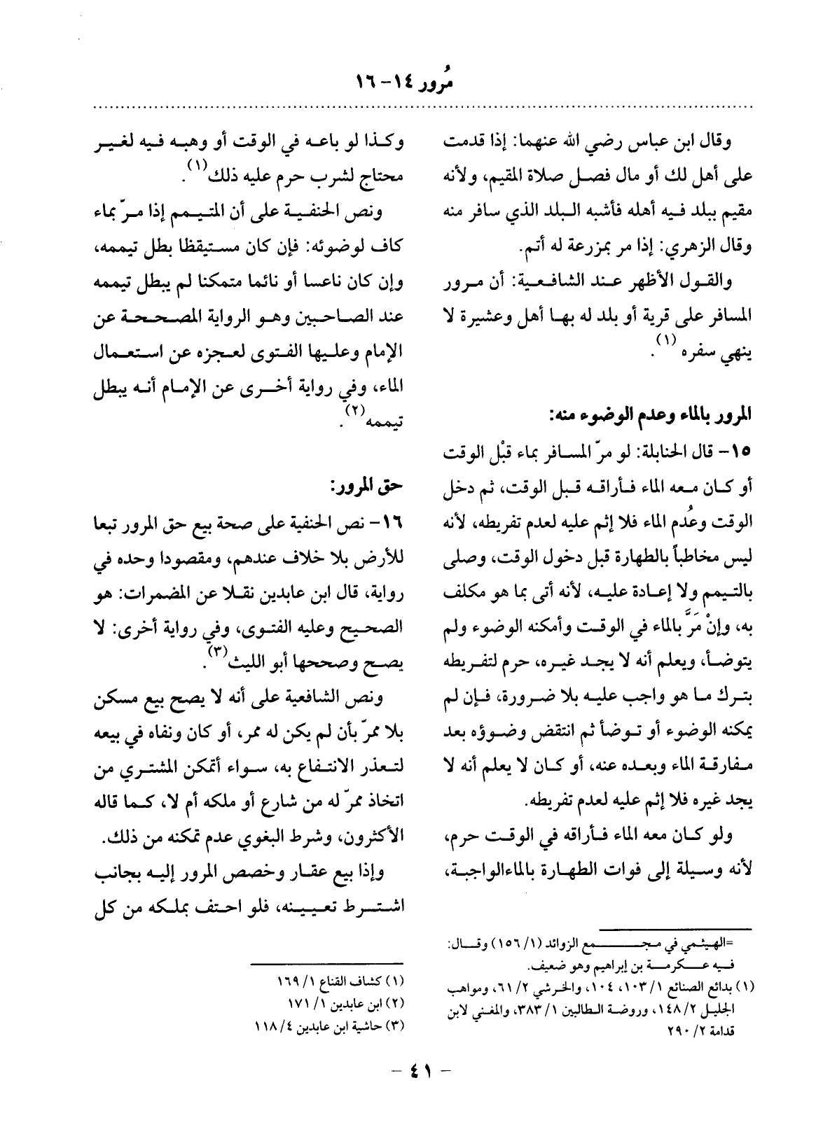 (1) بدائع الصنائع 1 / 103، 104، والخرشي 2 / 61، ومواهب الجليل 2 / 148، وروضة الطالبين 1 / 383، والمغني لابن قدامة 2 / 290.