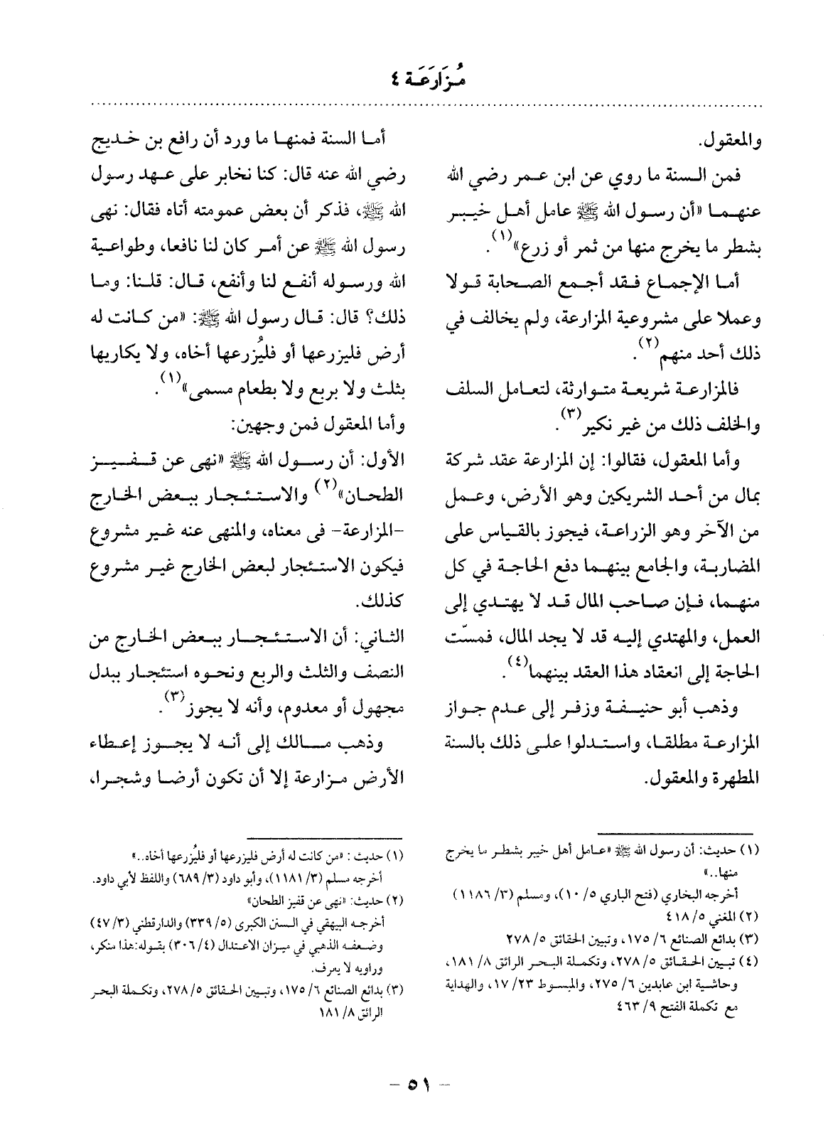(1) حديث: " أن رسول الله صلى الله عليه وسلم " عامل أهل خيبر بشطر ما يخرج منها. . ". أخرجه البخاري (فتح الباري 5 / 10) ، ومسلم (3 / 1186) .