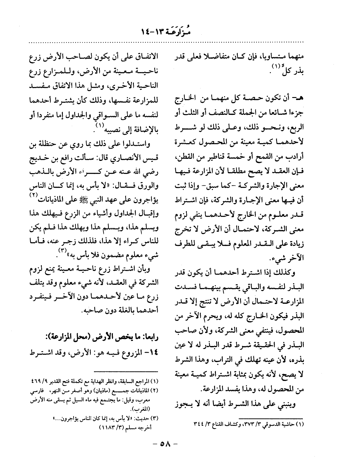 14 - الْمَزْرُوعُ فِيهِ هُوَ: الأَْرْضُ، وَقَدِ اشْتَرَطَ
