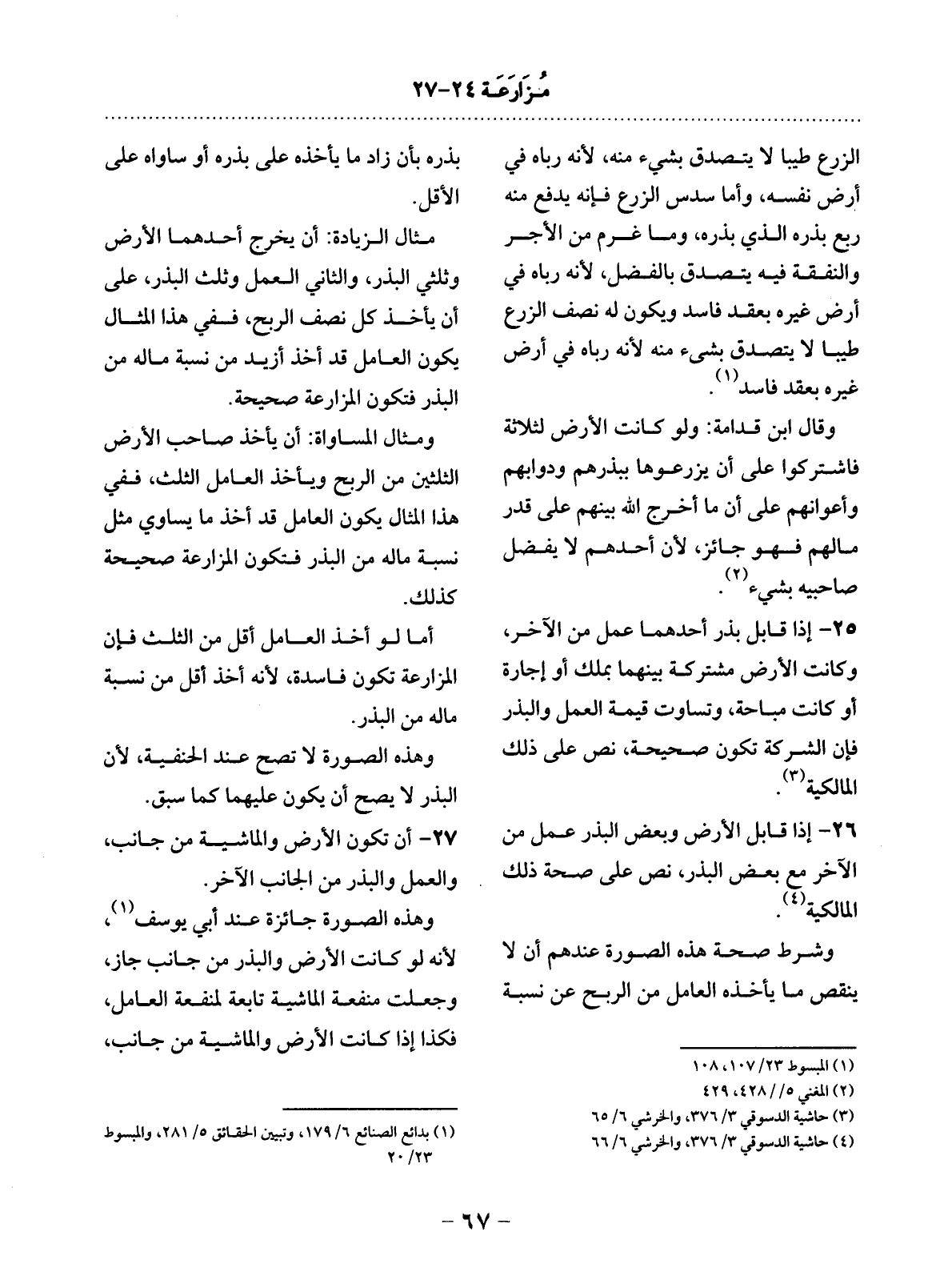 27 - أَنْ تَكُونَ الأَْرْضُ وَالْمَاشِيَةُ مِنْ جَانِبٍ، وَالْعَمَل وَالْبَذْرُ مِنَ الْجَانِبِ الآْخَرِ.