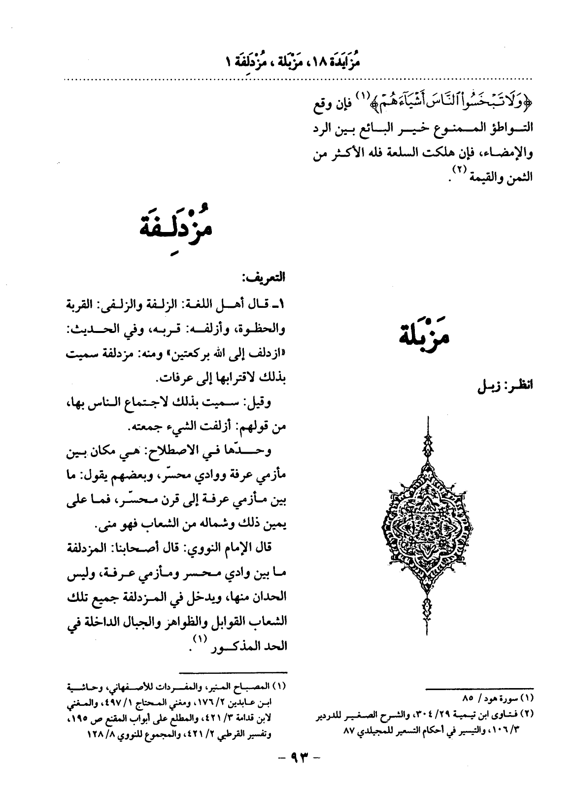 (1) المصباح المنير، والمفردات للأصفهاني، وحاشية ابن عابدين 2 / 176، ومغني المحتاج 1 / 497، والمغني لابن قدامة 3 / 421، والمطلع على أبواب المقنع ص 195، وتفسير القرطبي 2 / 421، والمجموع للنووي 8 / 128.