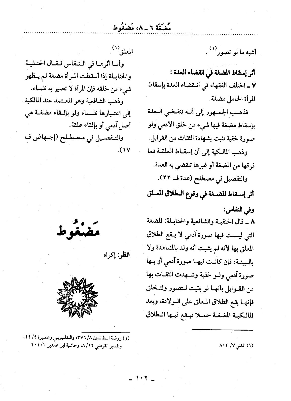 7 - اخْتَلَفَ الْفُقَهَاءُ فِي انْقِضَاءِ الْعِدَّةِ بِإِِِسْقَاطِ الْمَرْأَةِ الْحَامِل مُضْغَةً.
