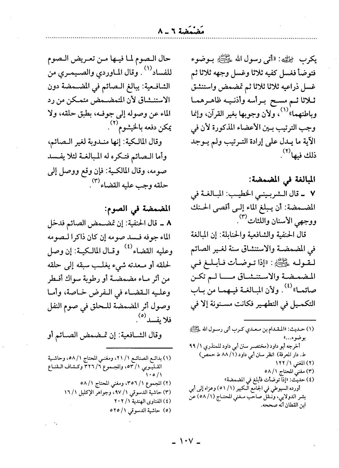 (1) بدائع الصنائع 1 / 21، ومغني المحتاج 1 / 58، وحاشية القليوبي 1 / 53، والمجموع 6 / 326 وكشاف القناع 1 / 105