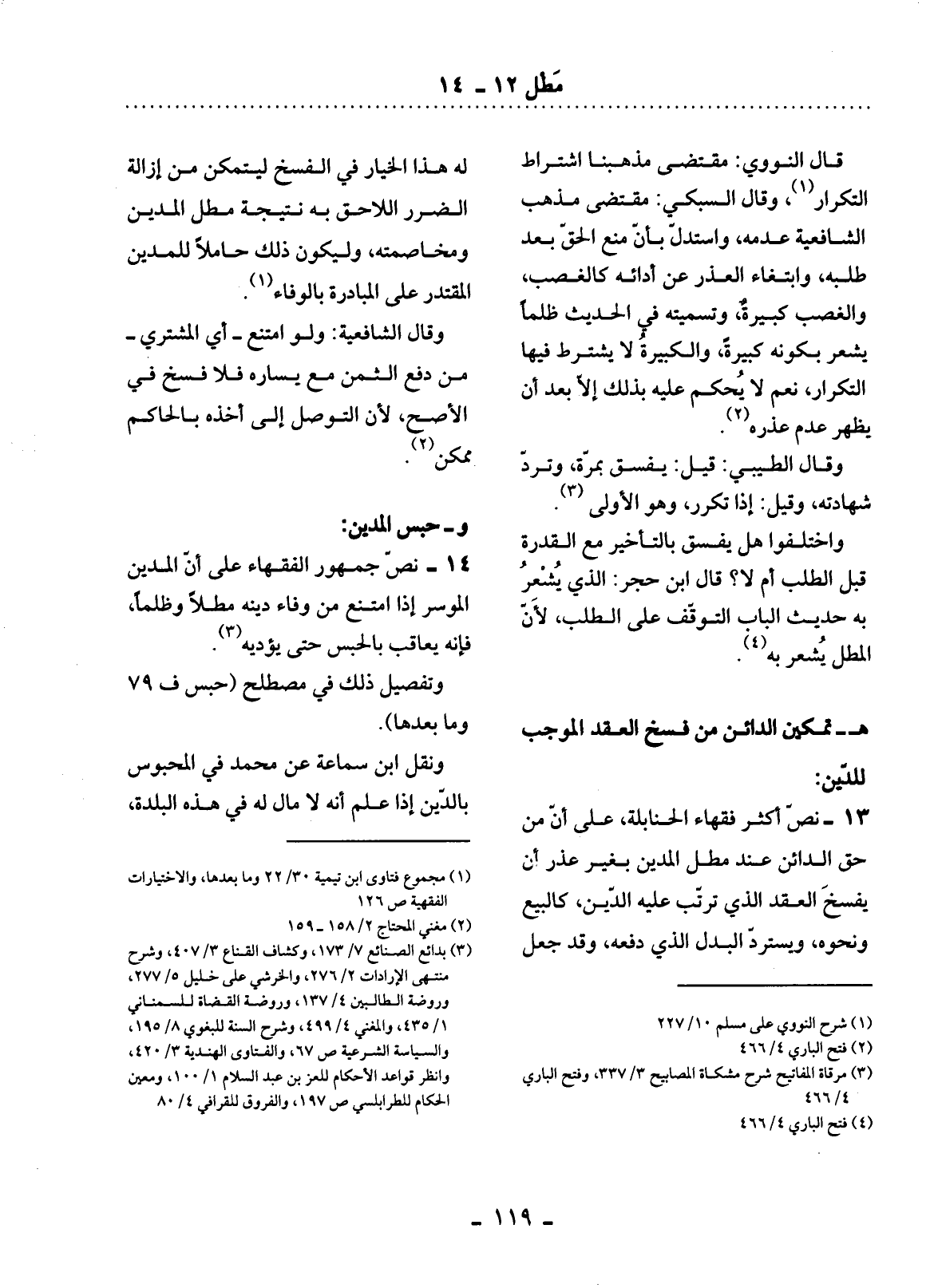 13 - نَصَّ أَكْثَرُ فُقَهَاءِ الْحَنَابِلَةِ، عَلَى أَنَّ مِنْ حَقِّ الدَّائِنِ عِنْدَ مَطْل الْمَدِينِ بِغَيْرِ عُذْرٍ أَنْ يَفْسَخَ الْعَقْدَ الَّذِي تَرَتَّبَ عَلَيْهِ الدَّيْنُ كَالْبَيْعِ وَنَحْوِهِ، وَيَسْتَرِدُّ الْبَدَل الَّذِي دَفَعَهُ، وَقَدْ جَعَل