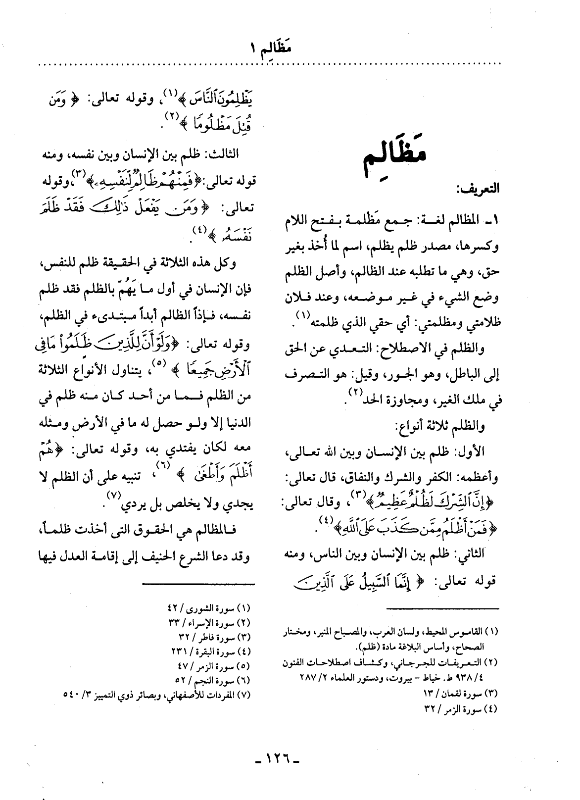 (1) القاموس المحيط، ولسان العرب، والمصباح المنير، ومختار الصحاح، وأساس البلاغة مادة (ظلم) .