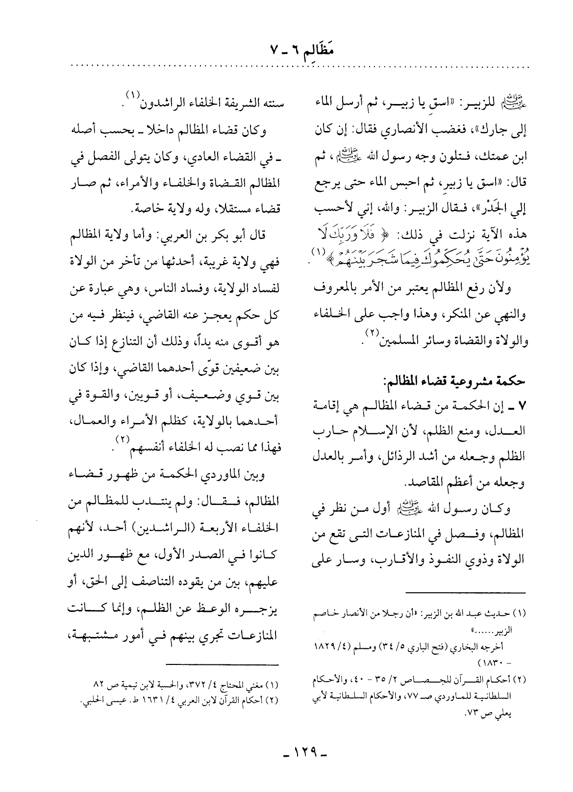 (1) حديث عبد الله بن الزبير: " أن رجلاً من الأنصار خاصم الزبير. . . . . . " أخرجه البخاري (فتح الباري 5 / 34) ومسلم (4 / 1829 - 1830) .