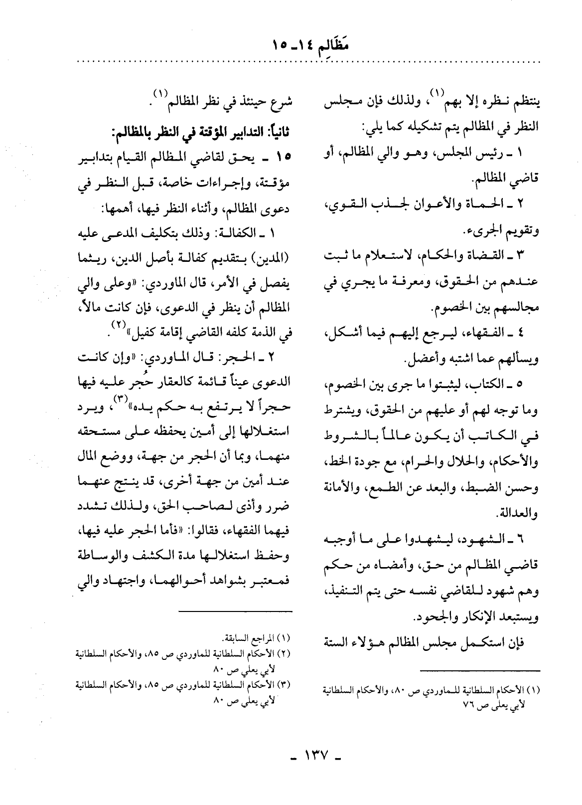 (2) الأحكام السلطانية للماوردي ص 85، والأحكام السلطانية لأبي يعلى ص 80.