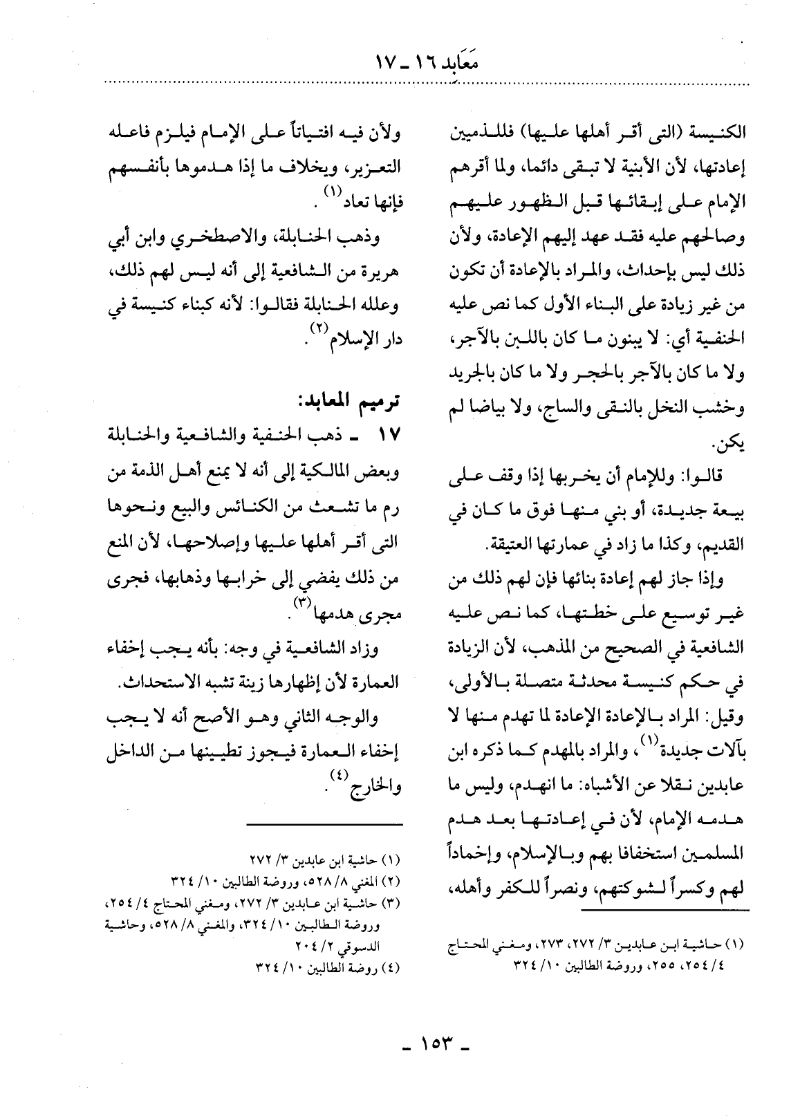 (1) حاشية ابن عابدين 3 / 272، 273، ومغني المحتاج 4 / 254، 255، وروضة الطالبين 10 / 324.