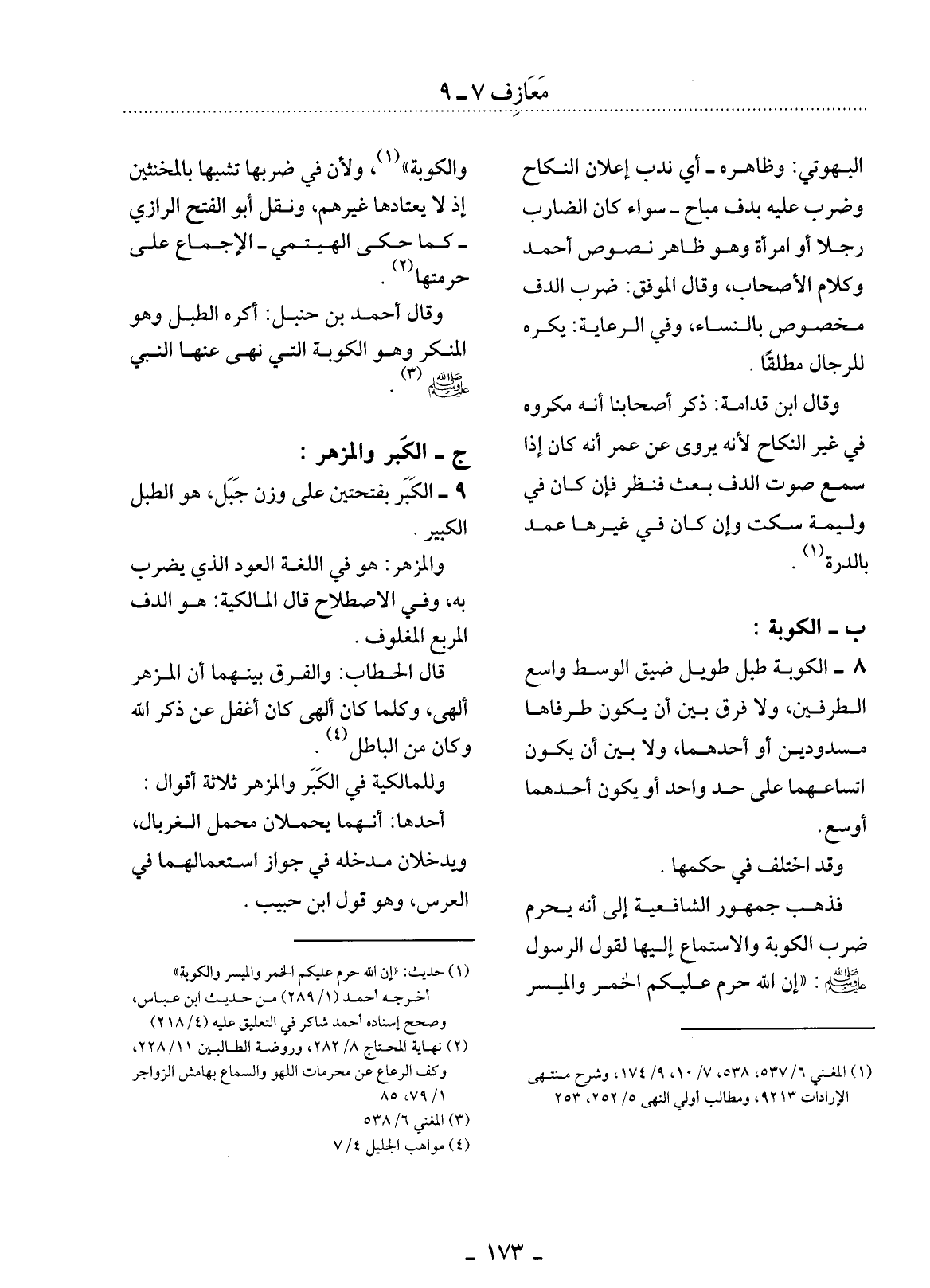 (2) نهاية المحتاج 8 / 282، وروضة الطالبين 11 / 228، وكف الرعاع عن محرمات اللهو والسماع بهامش الزواجر 1 / 79، 85.