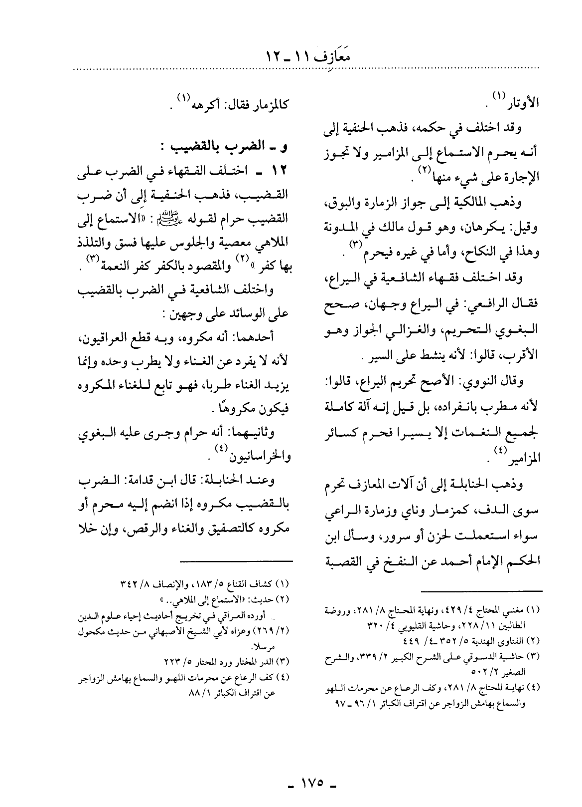 (4) نهاية المحتاج 8 / 281، وكف الرعاع عن محرمات اللهو والسماع بهامش الزواجر عن اقتراف الكبائر 1 / 96 - 97.