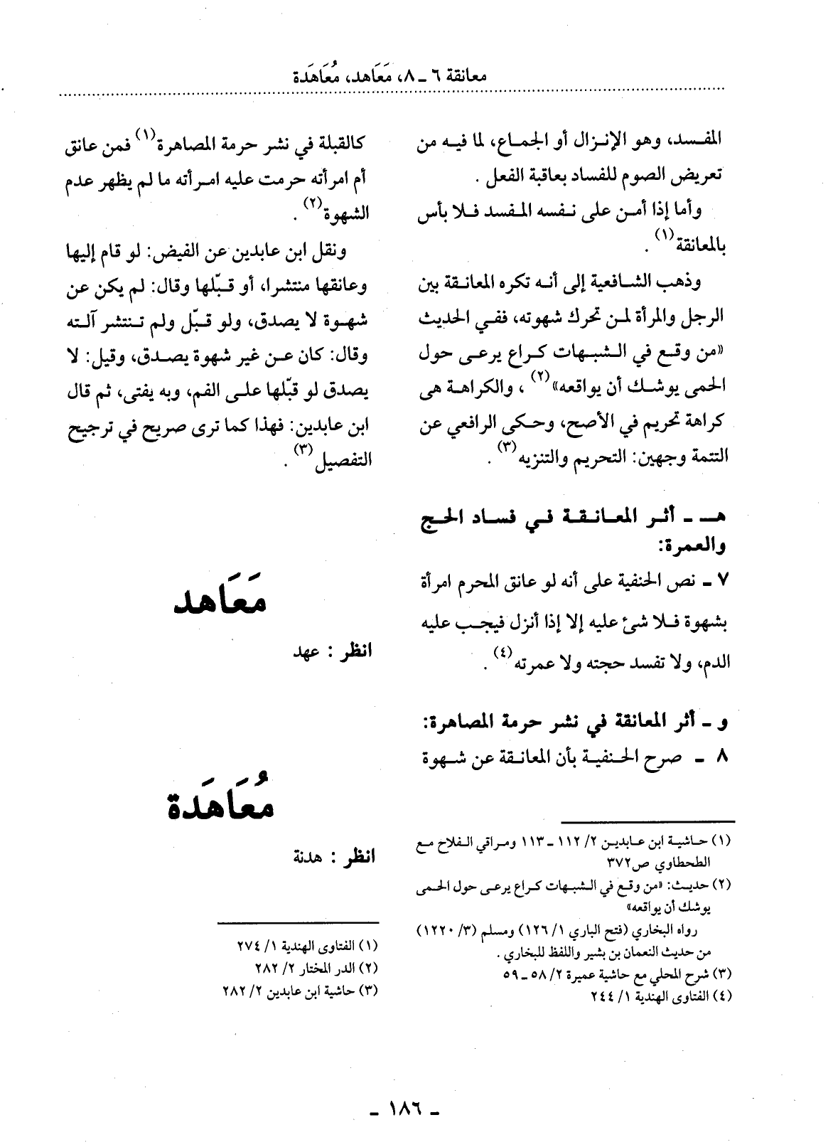 8 - صَرَّحَ الْحَنَفِيَّةُ بِأَنَّ الْمُعَانَقَةَ عَنْ شَهْوَةٍ