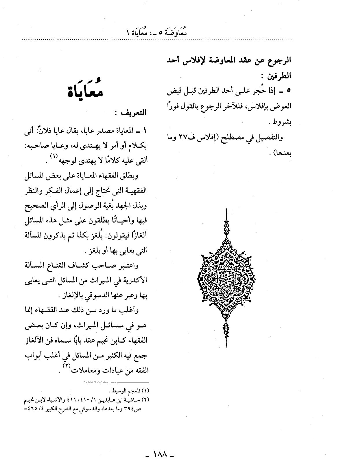 (2) حاشية ابن عابدين 1 / 410، 411، والأشباه لابن نجيم ص 394 وما بعدها، والدسوقي مع الشرح الكبير 4 / 465 و1 / 58، 339، وحاشية البيجوري على ابن قاسم 1 / 196، وكشاف القناع 4 / 410، والاختيار 5 / 130.