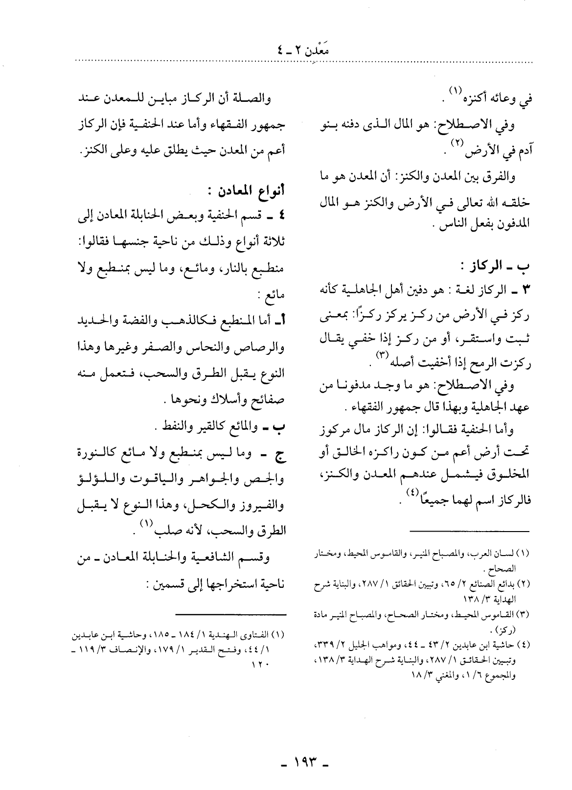 (2) بدائع الصنائع 2 / 65، وتبيين الحقائق 1 / 287، والبناية شرح الهداية 3 / 138.