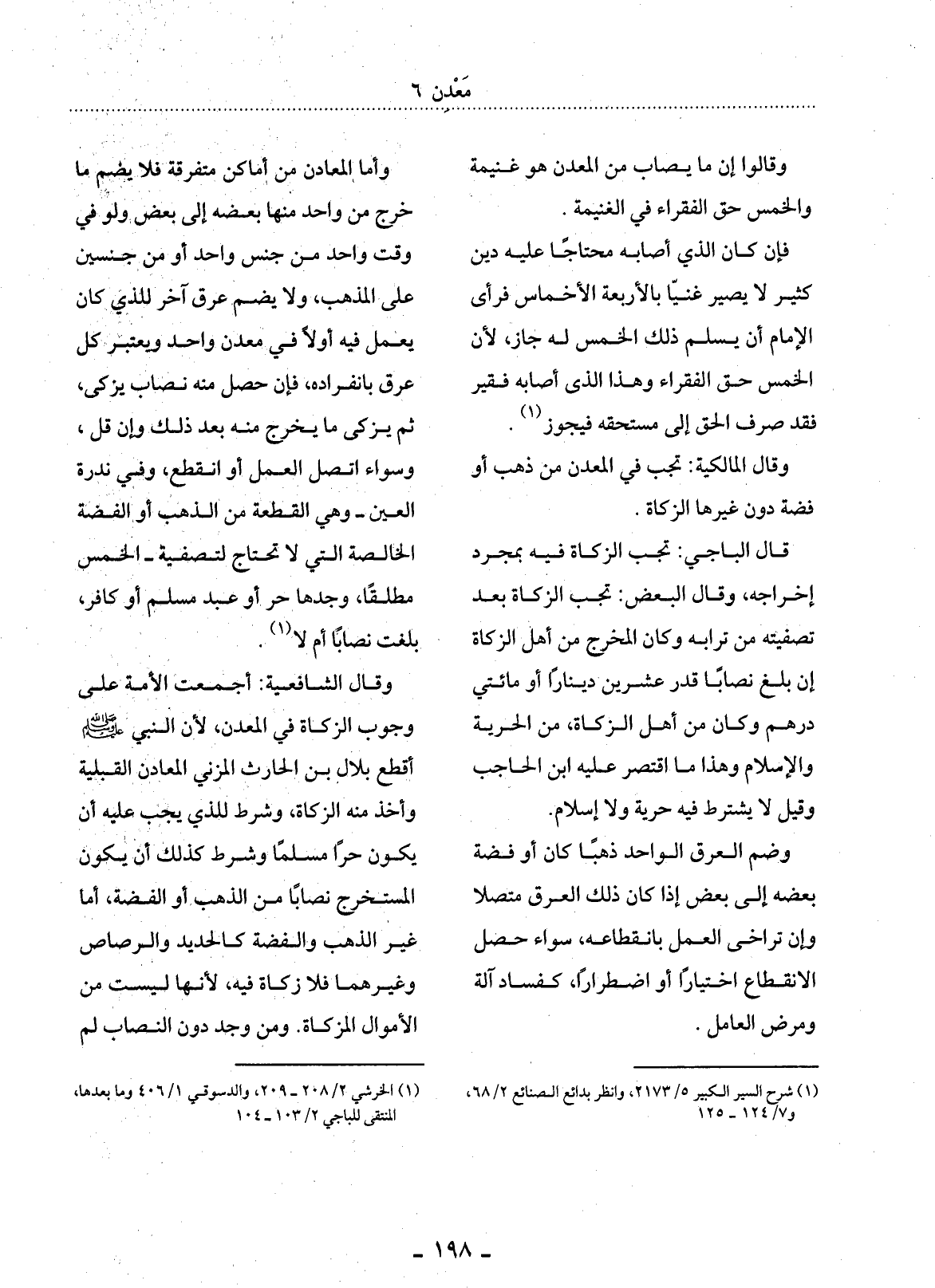 وَقَالُوا إِنَّ مَا يُصَابُ مِنَ الْمَعْدِنِ هُوَ غَنِيمَةٌ وَالْخُمُسُ حَقُّ الْفُقَرَاءِ فِي الْغَنِيمَةِ.