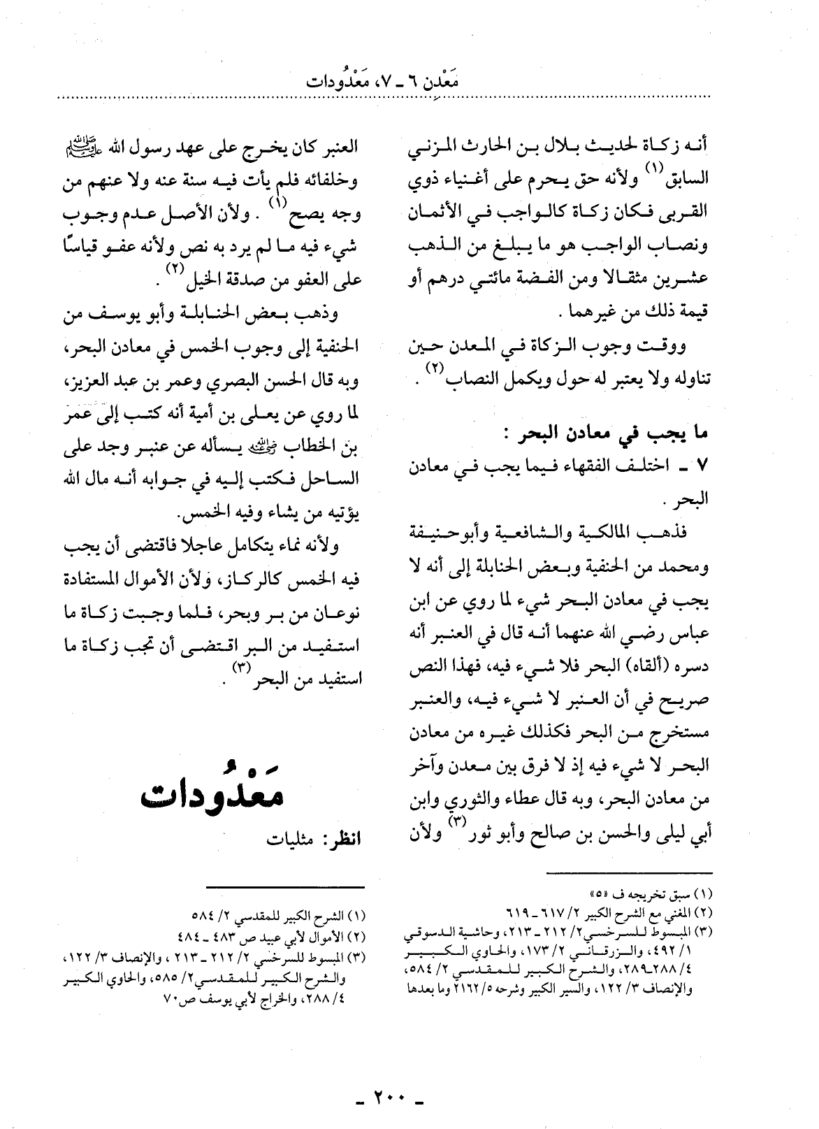 7 - اخْتَلَفَ الْفُقَهَاءُ فِيمَا يَجِبُ فِي مَعَادِنِ الْبَحْرِ.