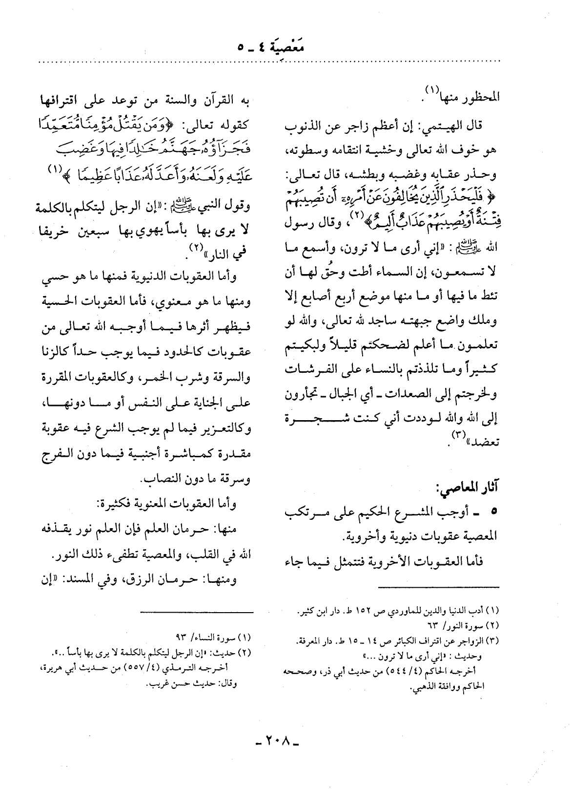 5 - أَوَجَبَ الْمُشَرِّعُ الْحَكِيمُ عَلَى مُرْتَكِبِ الْمَعْصِيَةِ عُقُوبَاتٍ دُنْيَوِيَّةً وَأُخْرَوِيَّةً.