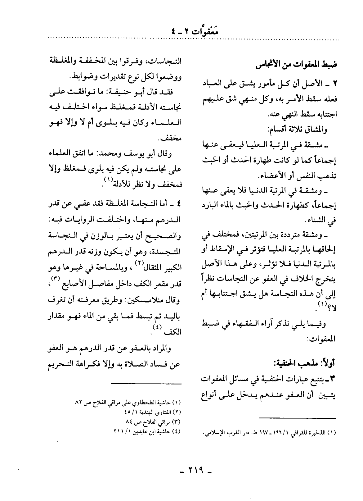 (1) الذخيرة للقرافي 1 / 196 - 197 ط. دار الغرب الإسلامي.