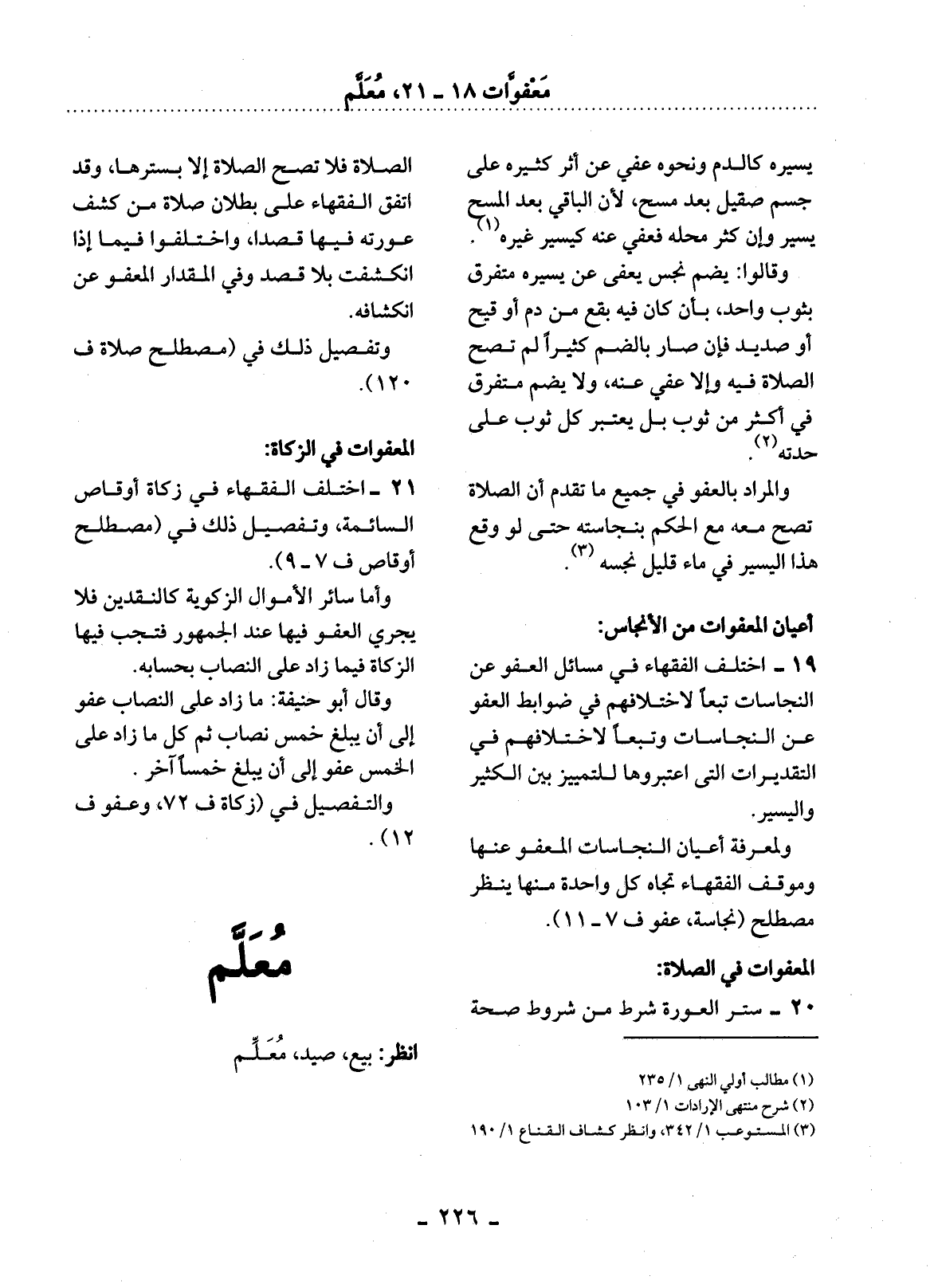 الْمَعْفُوَّاتُ فِي الصَّلاَةِ