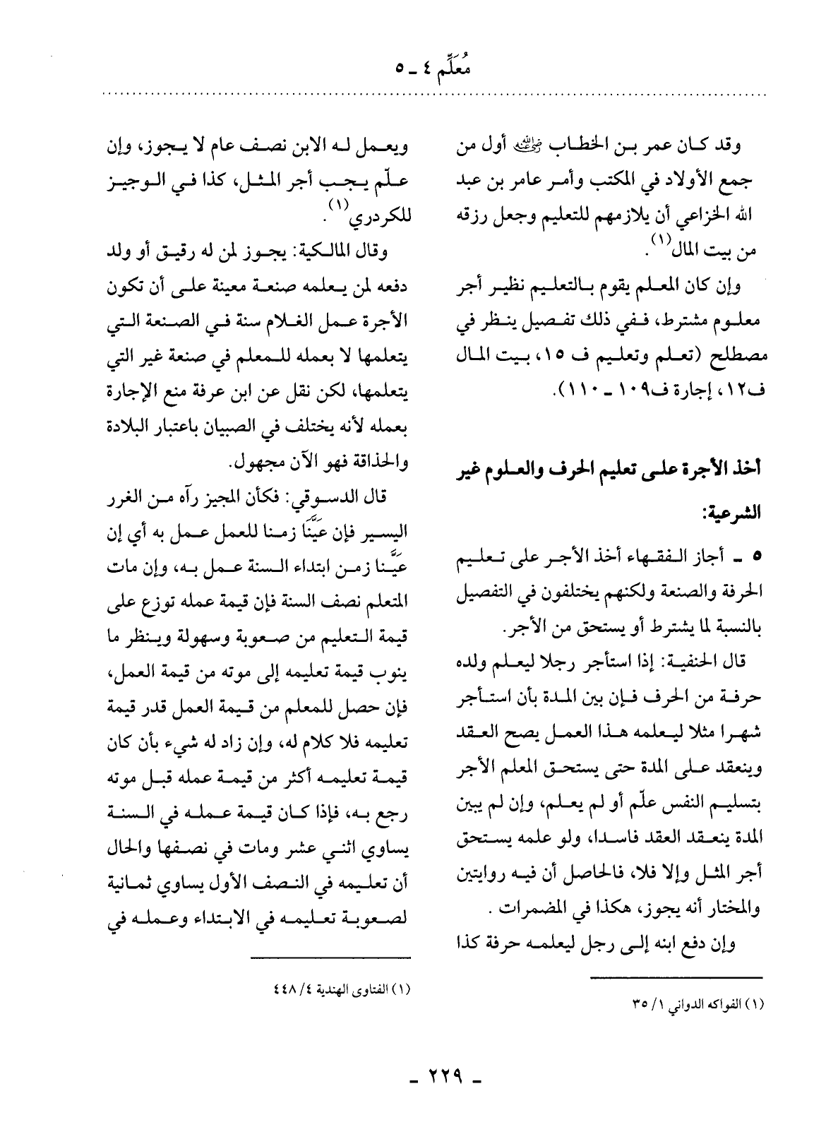 وَإِنْ كَانَ الْمُعَلِّمُ يَقُومُ بِالتَّعْلِيمِ نَظِيرَ أَجْرٍ مَعْلُومٍ مُشْتَرَطٍ، فَفِي ذَلِكَ تَفْصِيلٌ يُنْظَرُ فِي مُصْطَلَحِ (تَعَلُّمٌ وَتَعْلِيمٌ ف 15، بَيْتُ الْمَال ف 12، إِجَارَةٌ ف 109 - 110) .