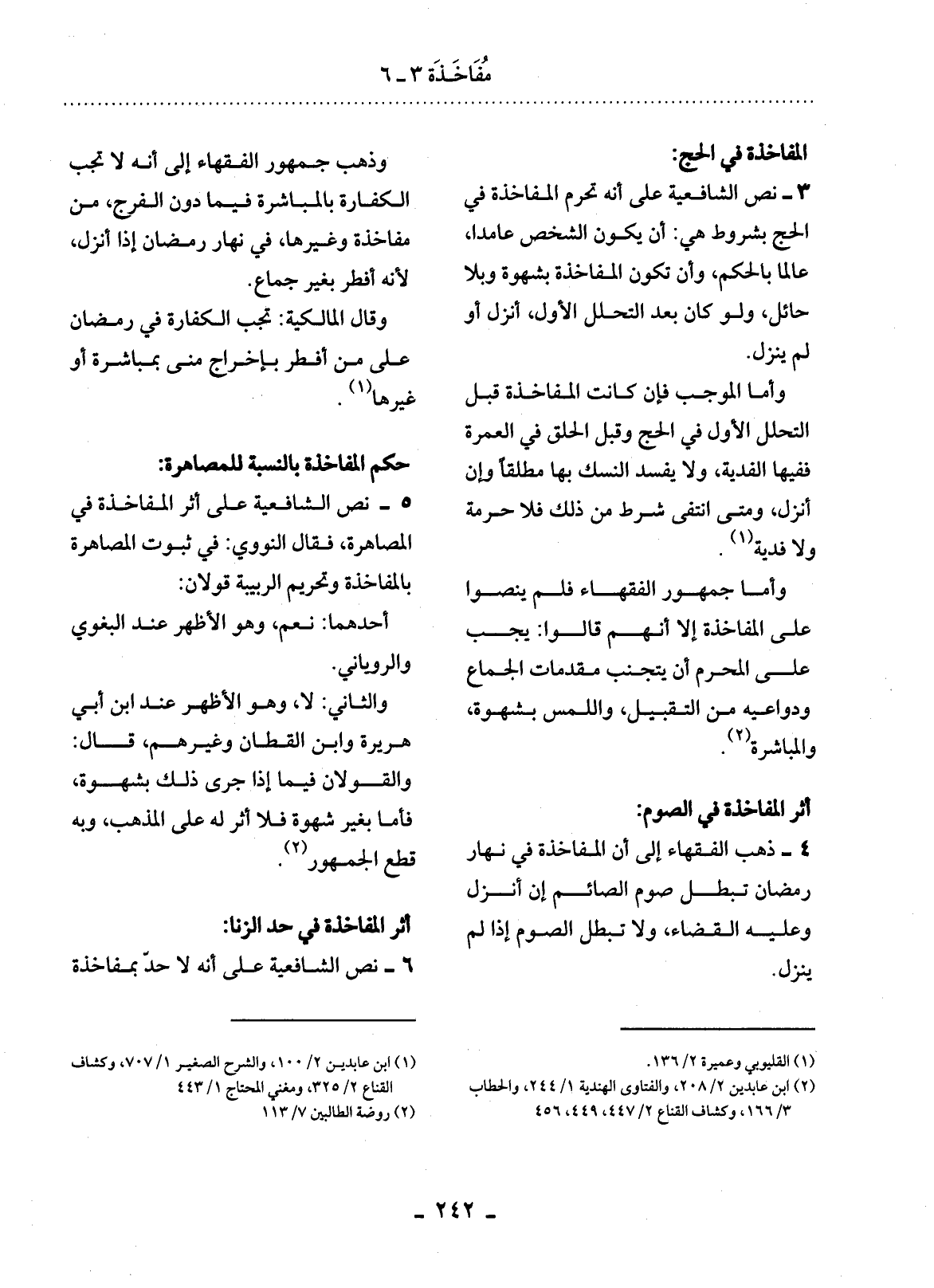 (2) ابن عابدين 2 / 208، والفتاوى الهندية 1 / 244، والحطاب 3 / 166، وكشاف القناع 2 / 447، 449، 456.