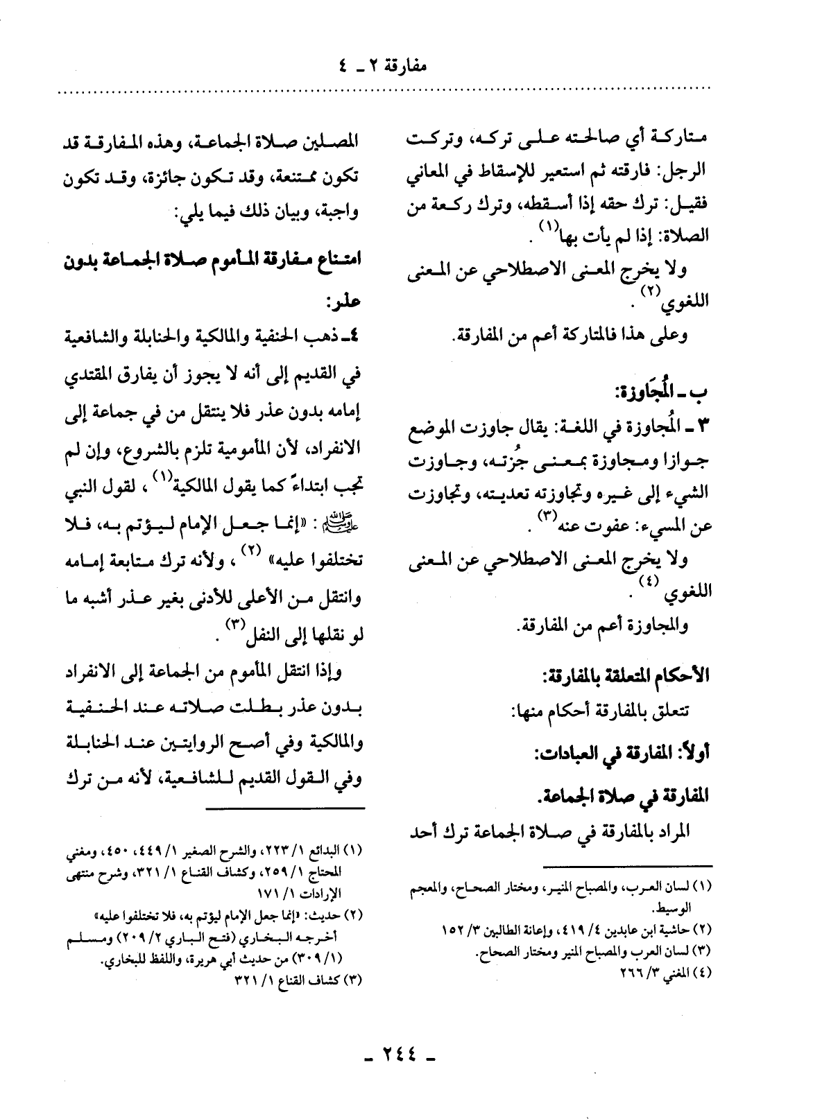 الْمُفَارَقَةُ فِي صَلاَةِ الْجَمَاعَةِ.