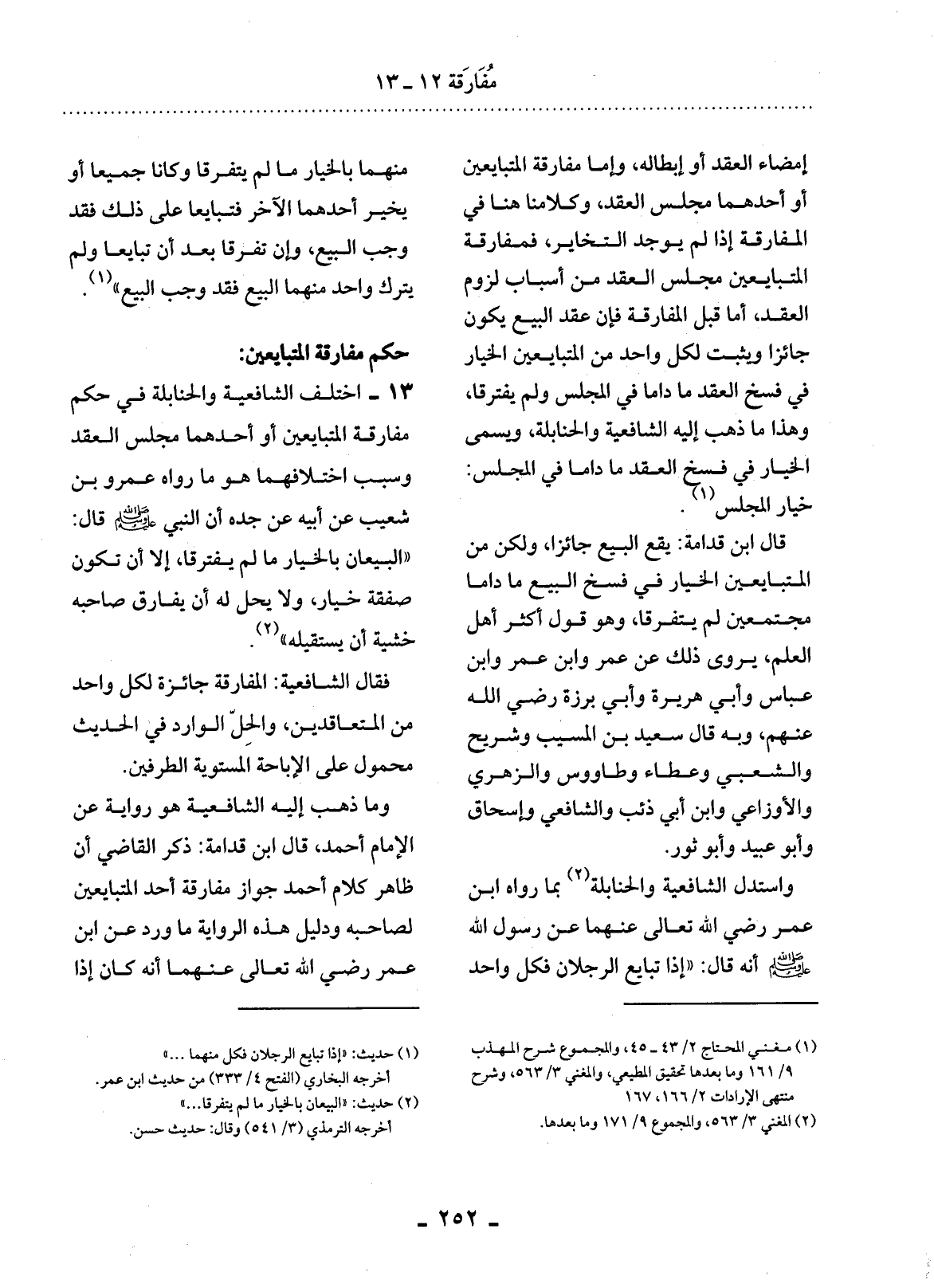 حُكْمُ مُفَارَقَةِ الْمُتَبَايِعَيْنِ