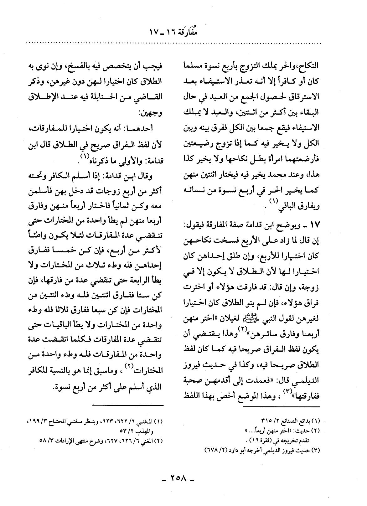 17 - وَيُوَضِّحُ ابْنُ قُدَامَةَ صِفَةَ الْمُفَارَقَةِ فَيَقُول: