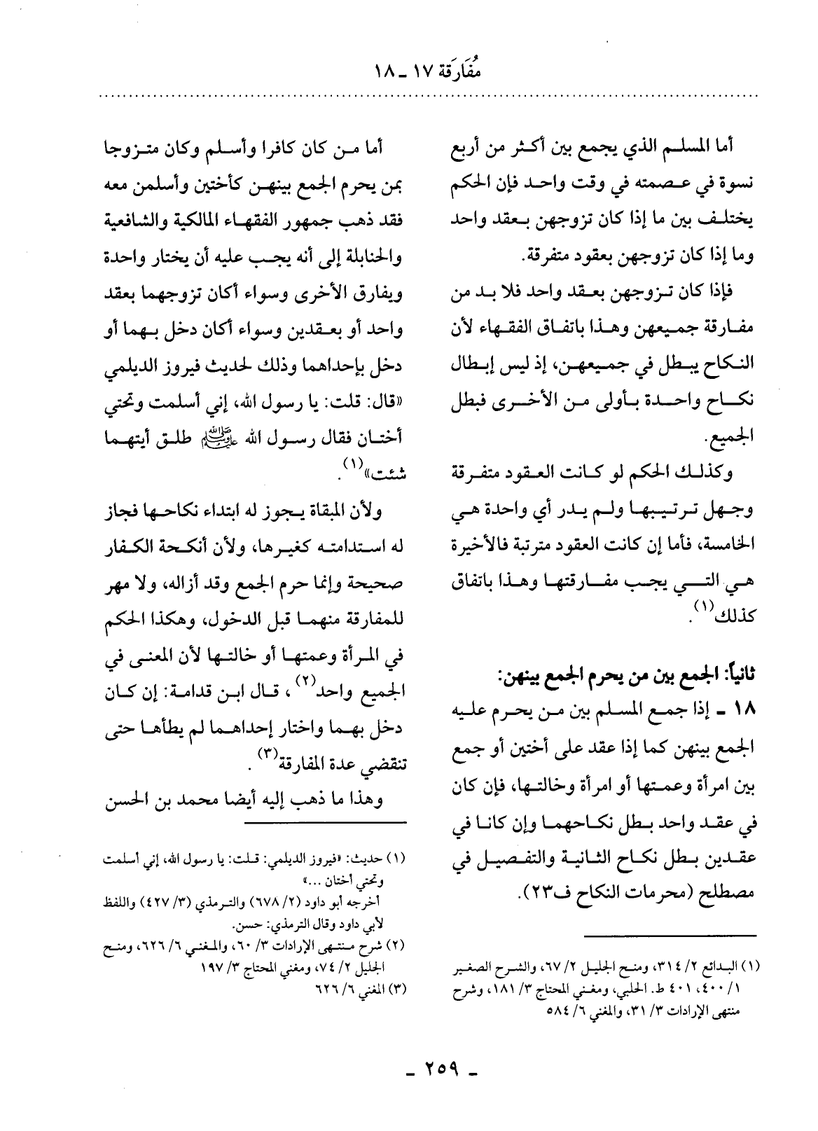 (1) حديث: " فيروز الديلمي: قلت: يا رسول الله، إني أسلمت وتحتي أختان. . . " أخرجه أبو داود (2 / 678) والترمذي (3 / 427) واللفظ لأبي داود وقال الترمذي: حسن.