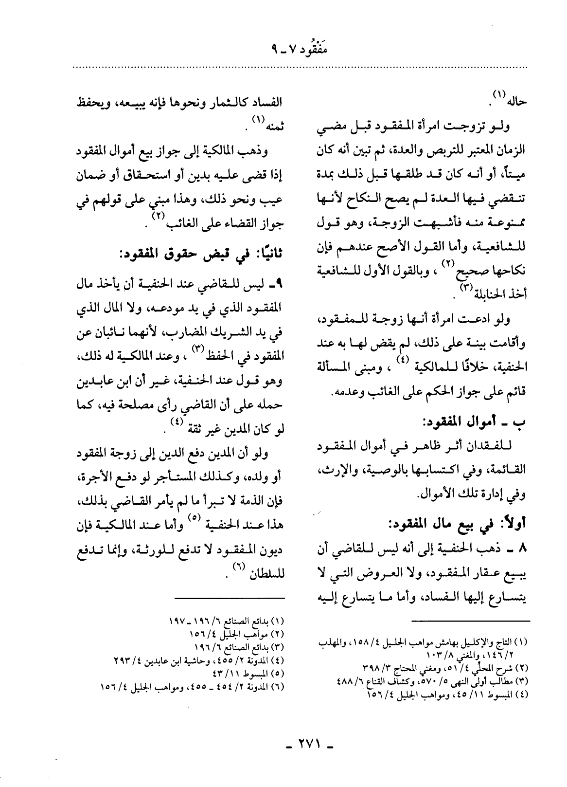 (6) المدونة 2 / 454 - 455، ومواهب الجليل 4 / 156.