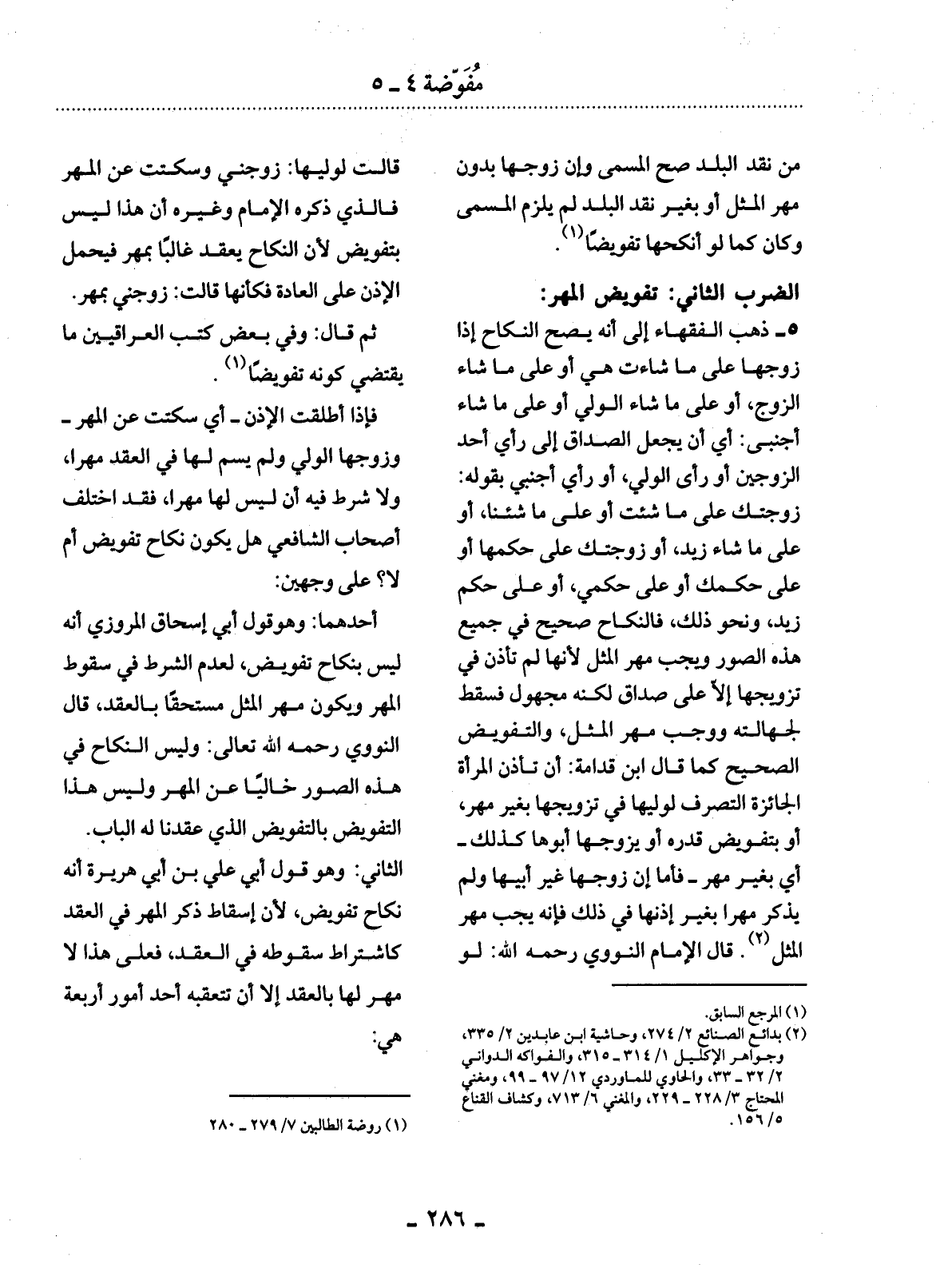 الضَّرْبُ الثَّانِي: تَفْوِيضُ الْمَهْرِ