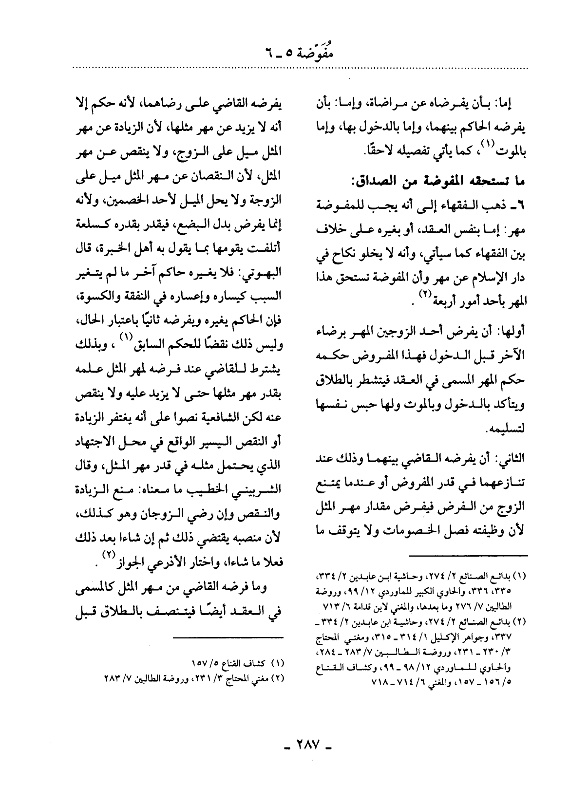 (1) بدائع الصنائع 2 / 274، وحاشية ابن عابدين 2 / 334، 335، 336، والحاوي الكبير للماوردي 12 / 99، وروضة الطالبين 7 / 276 وما بعدها، والمغني لابن قدامة 6 / 713.