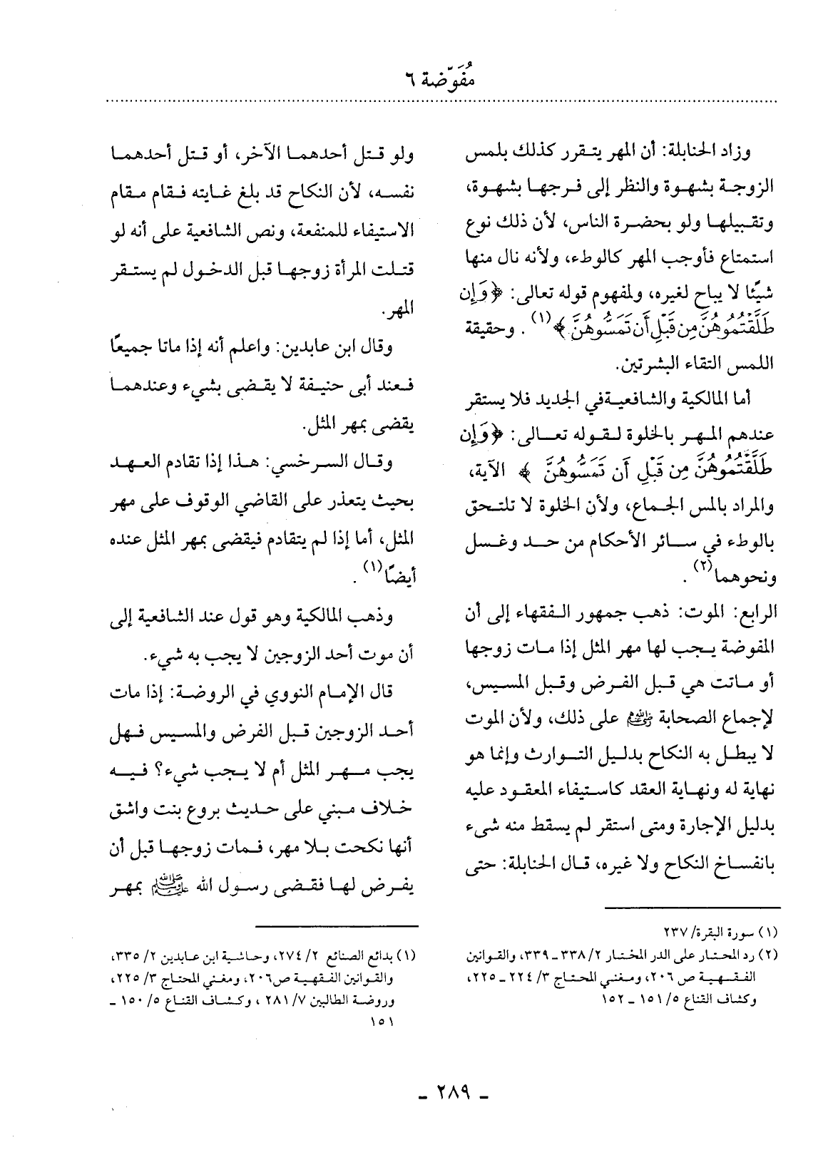 (2) رد المحتار على الدر المختار 2 / 338 - 339، والقوانين الفقهية ص 206، ومغني المحتاج 3 / 224 - 225، وكشاف القناع 5 / 151 - 152.