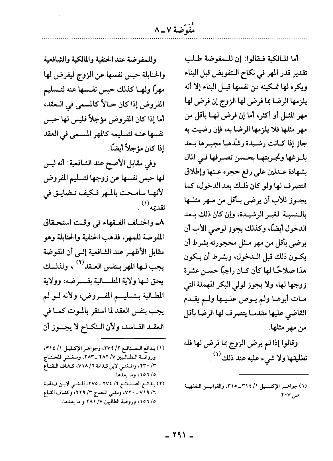 (1) جواهر الإكليل 1 / 314 - 315، والقوانين الفقهية ص 207.