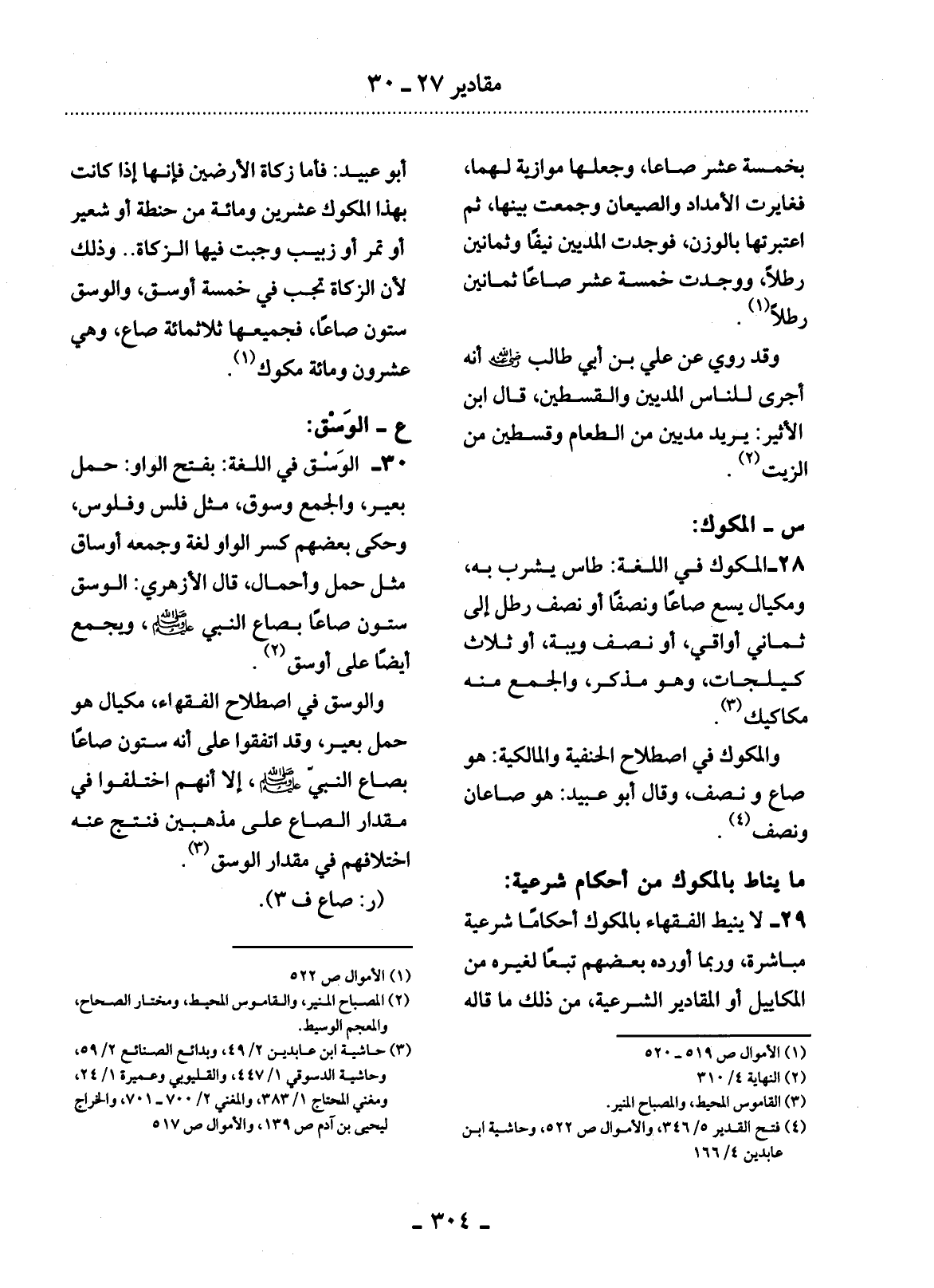 29 - لاَ يُنِيطُ الْفُقَهَاءُ بِالْمَكُّوكِ أَحْكَامًا شَرْعِيَّةً مُبَاشَرَةً، وَرُبَّمَا أَوْرَدَهُ بَعْضُهُمْ تَبَعًا لِغَيْرِهِ مِنَ الْمَكَايِيل أَوِ الْمَقَادِيرِ الشَّرْعِيَّةِ، مِنْ ذَلِكَ مَا قَالَهُ