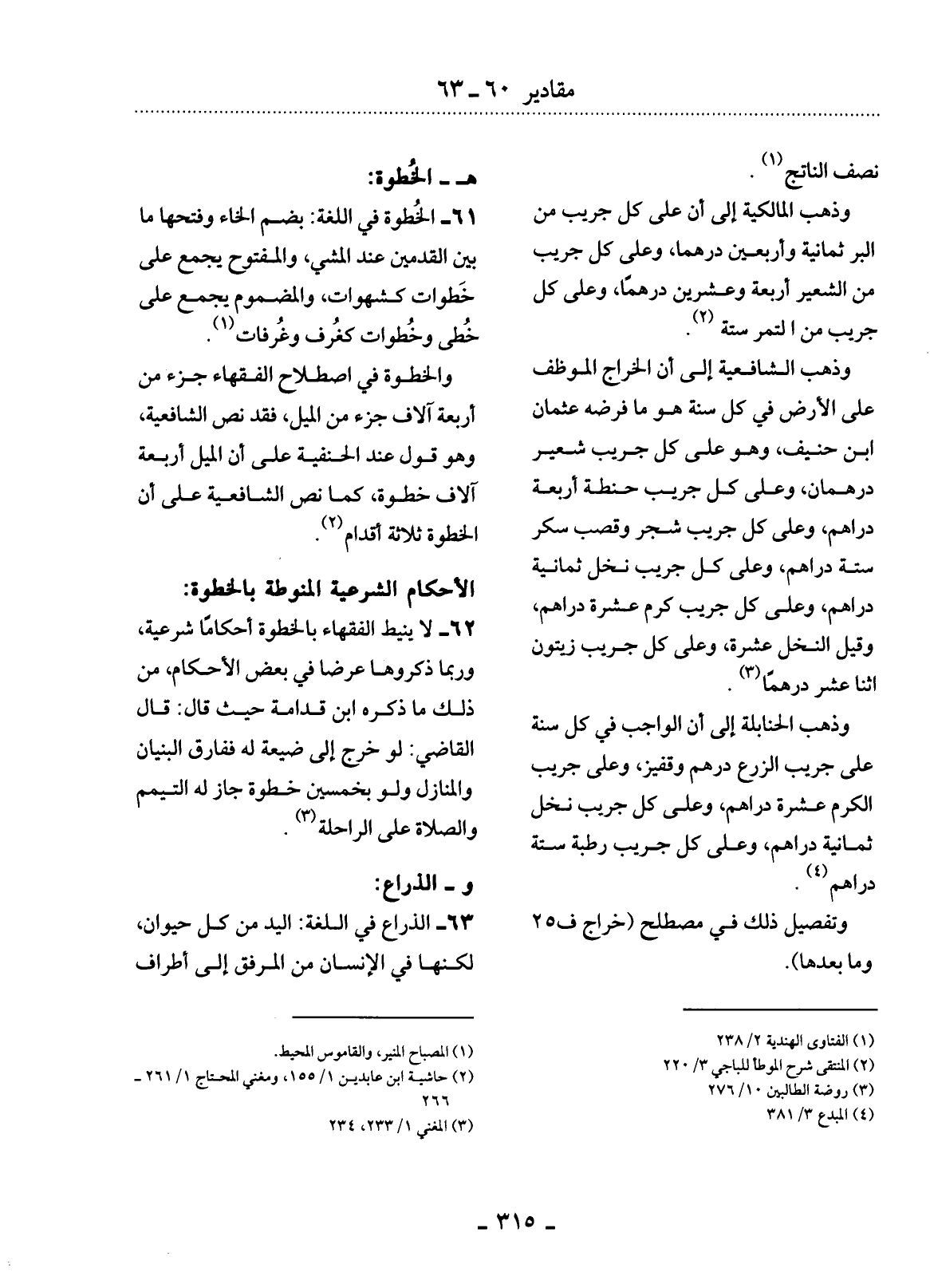 61 - الْخُطْوَةُ فِي اللُّغَةِ: بِضَمِّ الْخَاءِ وَفَتْحِهَا مَا بَيْنَ الْقَدَمَيْنِ عِنْدَ الْمَشْيِ، وَالْمَفْتُوحُ يُجْمَعُ عَلَى خَطَوَاتٍ كَشَهَوَاتِ، وَالْمَضْمُومُ يُجْمَعُ عَلَى خُطًى وَخُطُوَاتٍ كَغُرَفٍ وَغُرُفَاتٍ. (1)