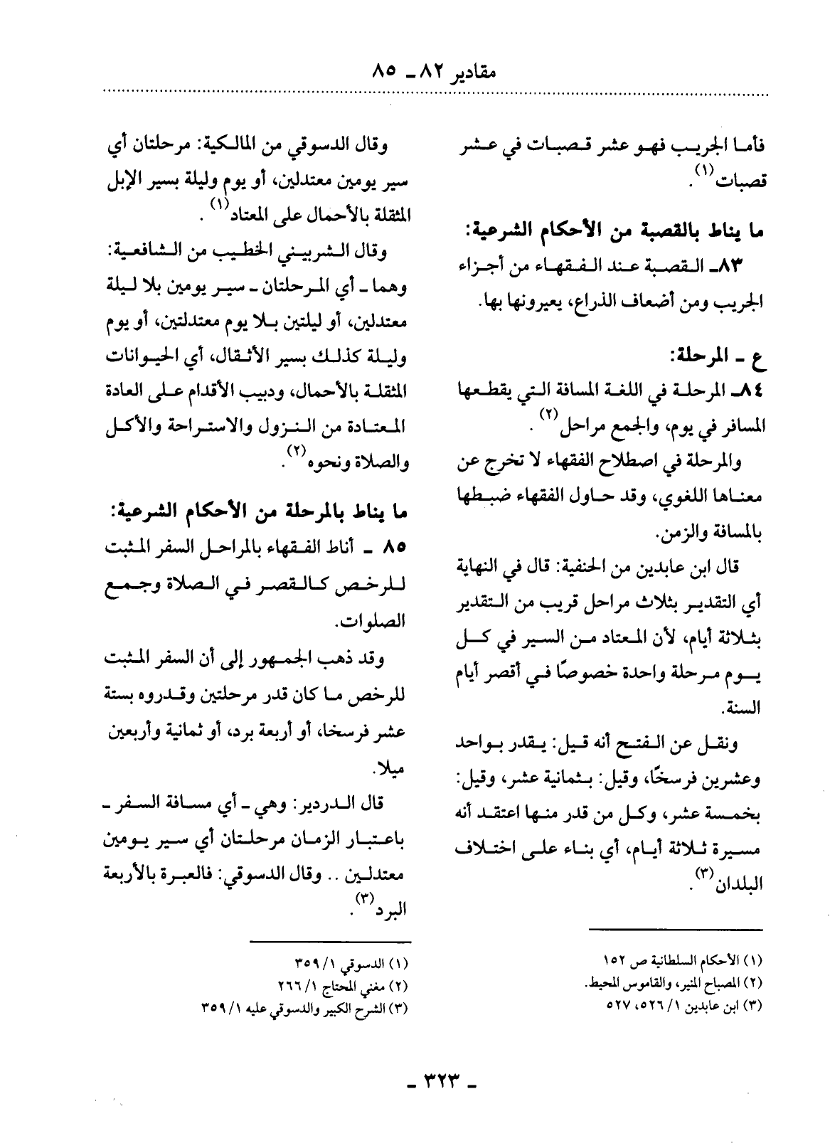 85 - أَنَاطَ الْفُقَهَاءُ بِالْمَرَاحِل السَّفَرَ الْمُثْبِتَ لِلرُّخَصِ كَالْقَصْرِ فِي الصَّلاَةِ وَجَمْعِ الصَّلَوَاتِ