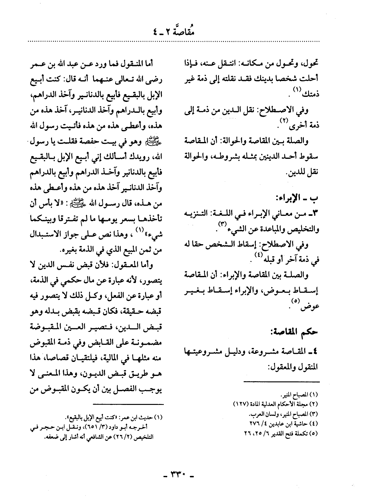 4 - الْمُقَاصَّةُ مَشْرُوعَةٌ، وَدَلِيل مَشْرُوعِيَّتِهَا الْمَنْقُول وَالْمَعْقُول: