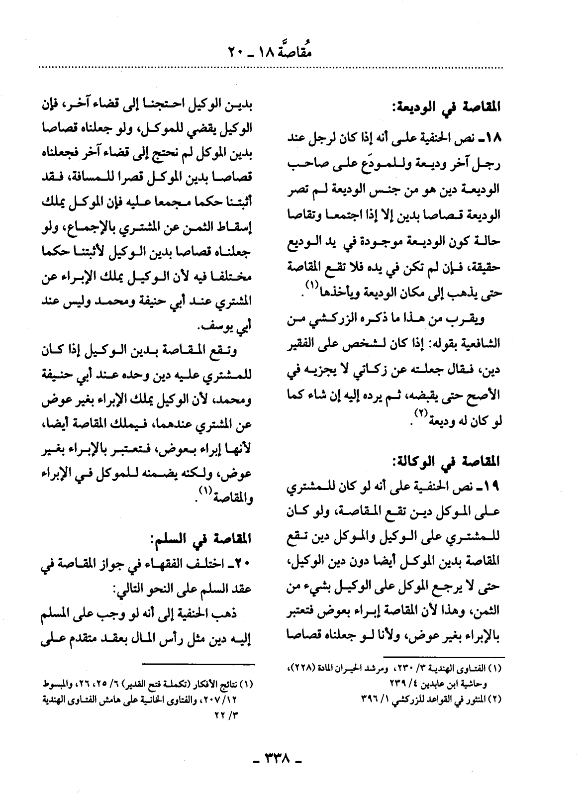 (1) الفتاوى الهندية 3 / 230، ومرشد الحيران المادة (228) ، وحاشية ابن عابدين 4 / 239.