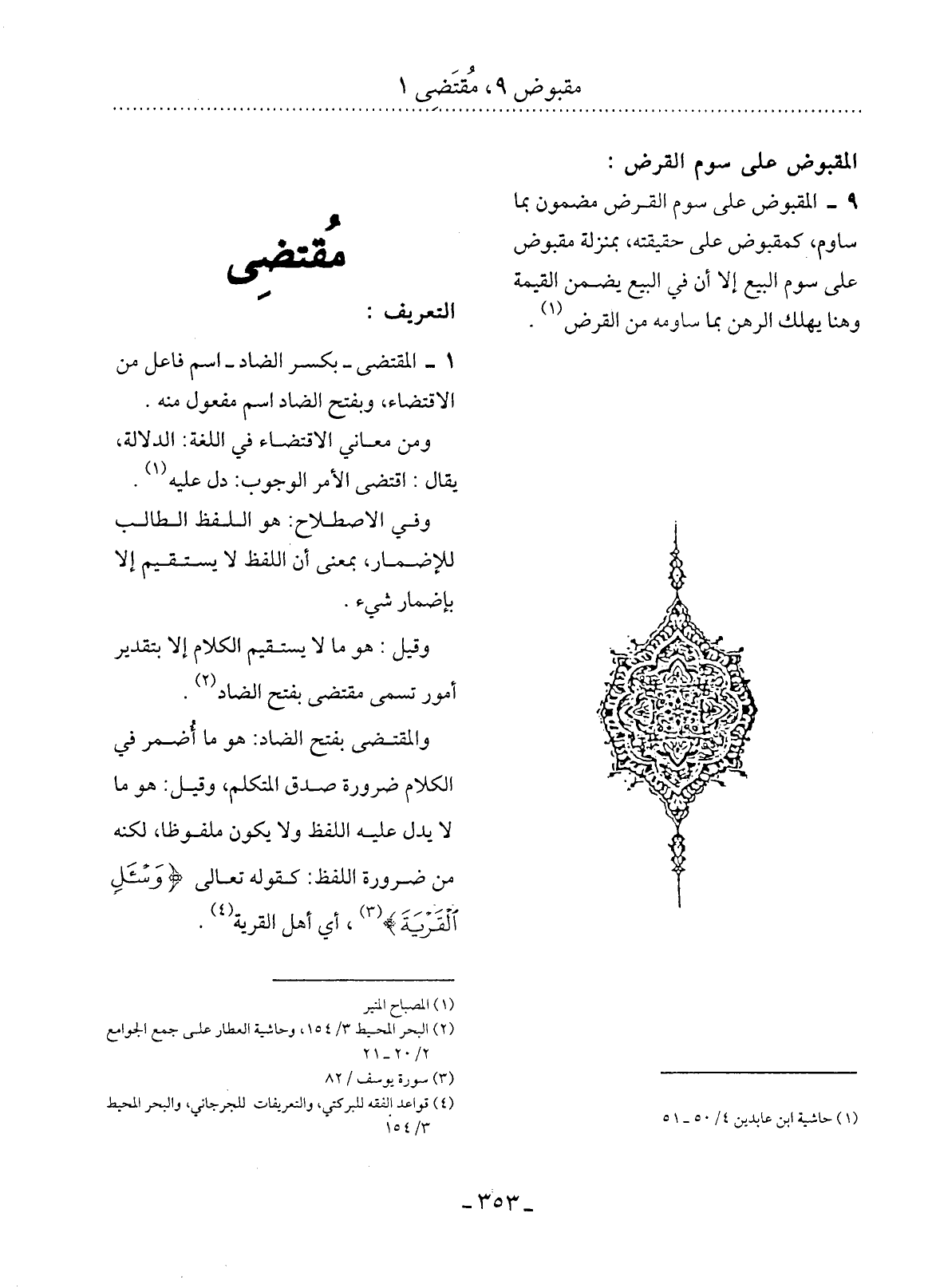(4) قواعد الفقه للبركتي، والتعريفات للجرجاني، والبحر المحيط 3 / 154.