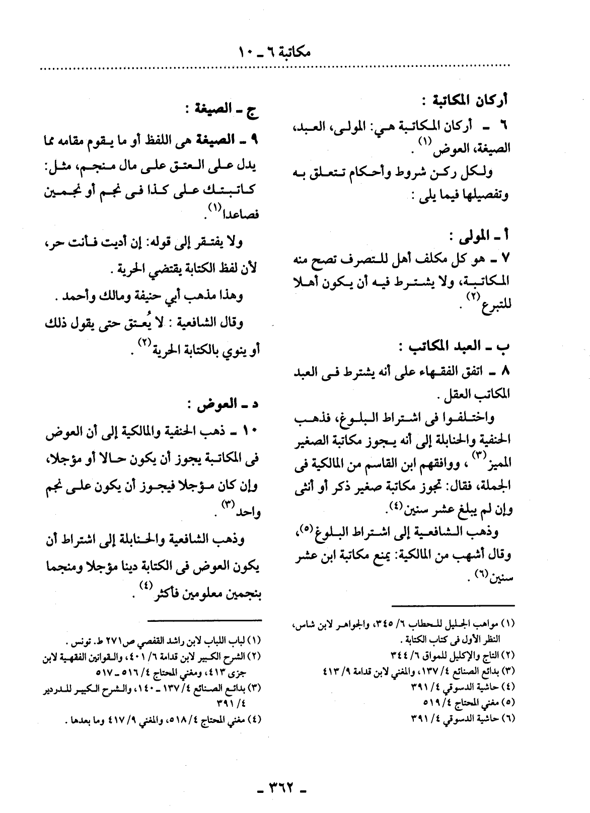 (1) مواهب الجليل للحطاب 6 / 345، والجواهر لابن شاس، النظر الأول في كتاب الكتابة.