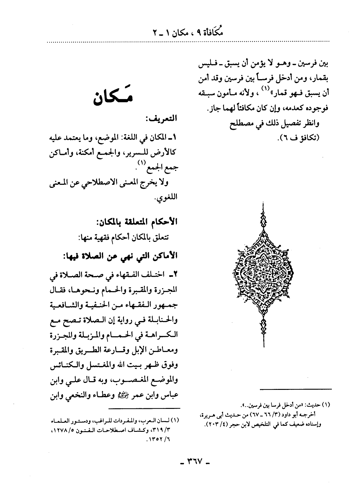 تَتَعَلَّقُ بِالْمَكَانِ أَحْكَامٌ فِقْهِيَّةٌ مِنْهَا: