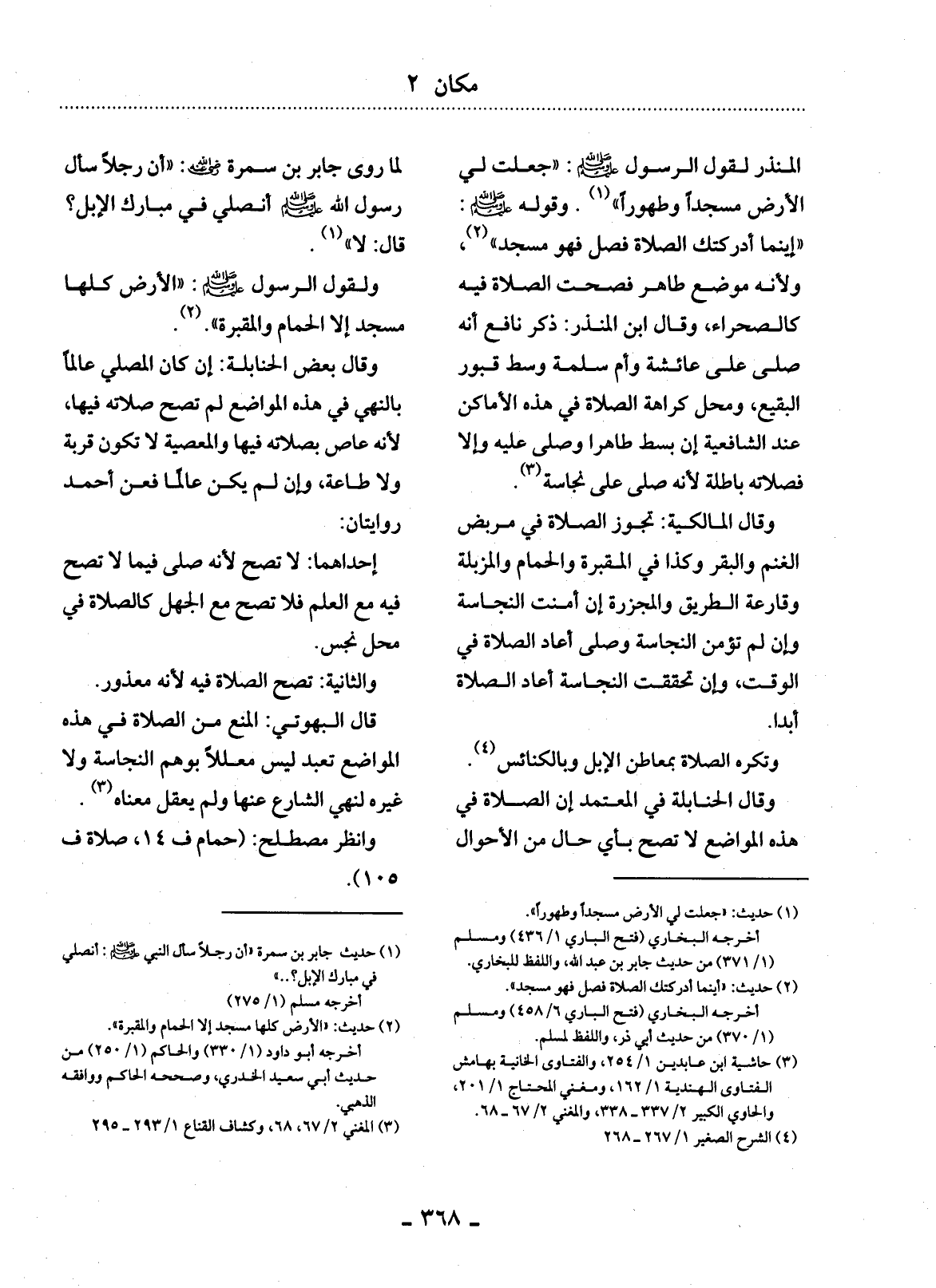 (2) حديث: " أينما أدركتك الصلاة فصل فهو مسجد ". أخرجه البخاري (فتح الباري 6 / 458) ومسلم (1 / 370) من حديث أبي ذر، واللفظ لمسلم.