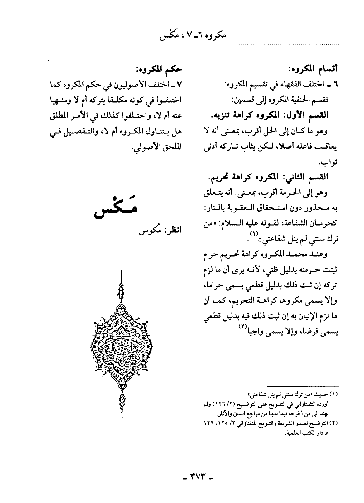 (2) التوضيح لصدر الشريعة والتلويح للتفتازاني 2 / 125، 126 ط دار الكتب العلمية.