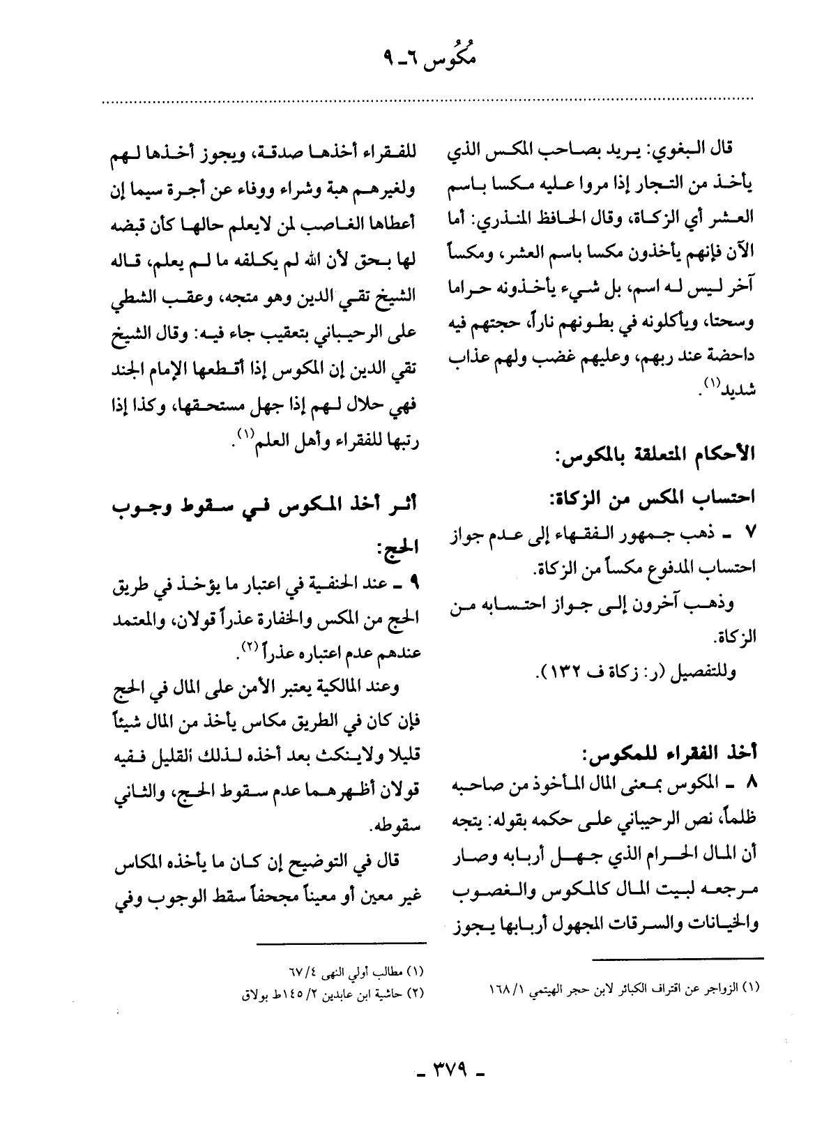 7 - ذَهَبَ جُمْهُورُ الْفُقَهَاءِ إِلَى عَدَمِ جَوَازِ احْتِسَابِ الْمَدْفُوعِ مَكْسًا مِنَ الزَّكَاةِ.