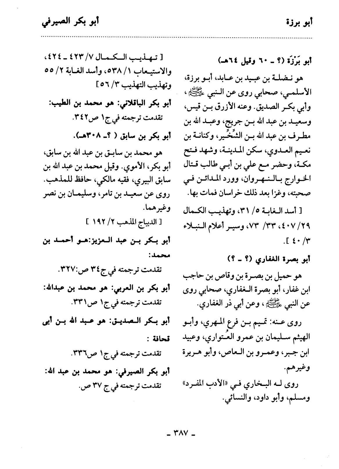 [أسد الغابة 5 / 31، وتهذيب الكمال 29 / 407، 33 / 73، وسير أعلام النبلاء 3 / 40] .