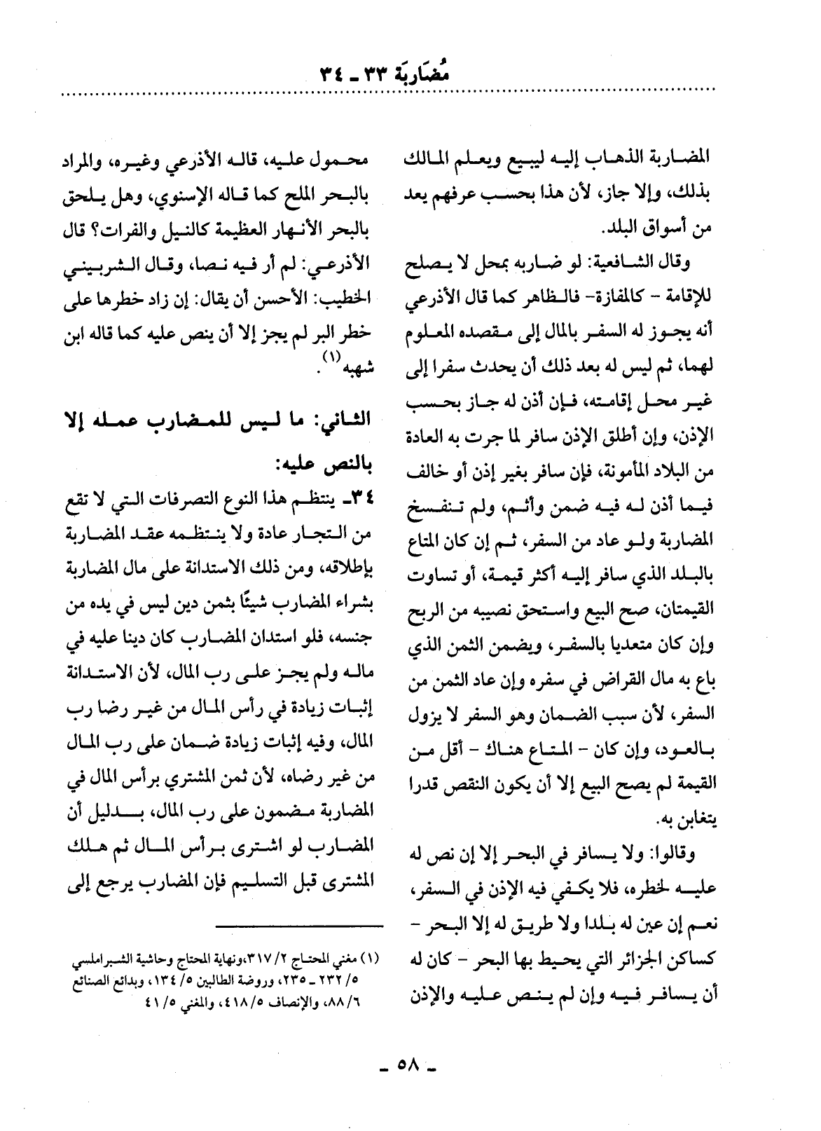 الْمُضَارَبَةِ الذَّهَابَ إِِلَيْهِ لِيَبِيعَ وَيَعْلَمُ الْمَالِكُ بِذَلِكَ، وَإِِِلاَّ جَازَ، لأَِنَّ هَذَا بِحَسَبِ عُرْفِهِمْ يُعَدُّ مِنْ أَسْوَاقِ الْبَلَدِ.