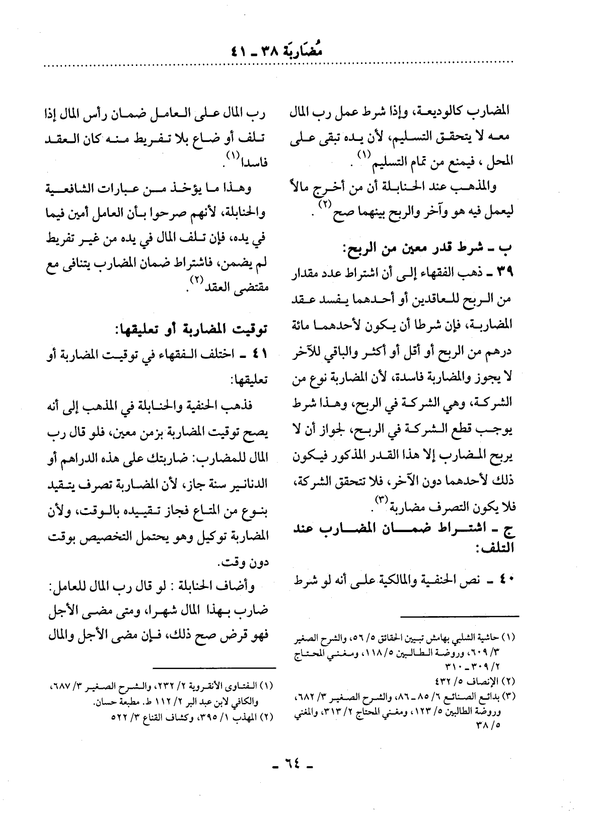 41 - اخْتَلَفَ الْفُقَهَاءُ فِي تَوْقِيتِ الْمُضَارَبَةِ أَوْ تَعْلِيقُهَا: