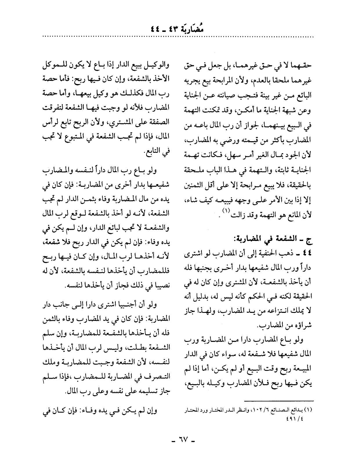 ج - الشُّفْعَةُ فِي الْمُضَارَبَةِ